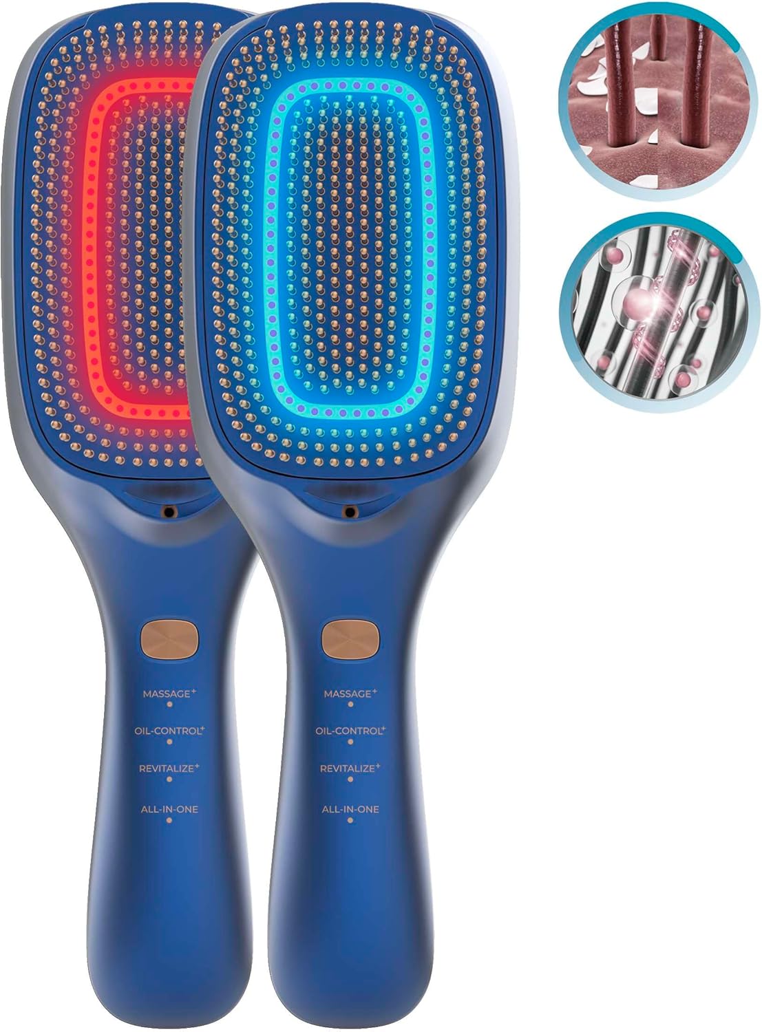 Brosse réparatrice capillaire avec 5 technologies : vibration, ions négatifs, micro-courants EMS, laser basse puissance (LLLT) et lumière LED rouge et bleue. Remplacez votre brosse classique et stimulez la régénération des cuticules de vos cheveux.