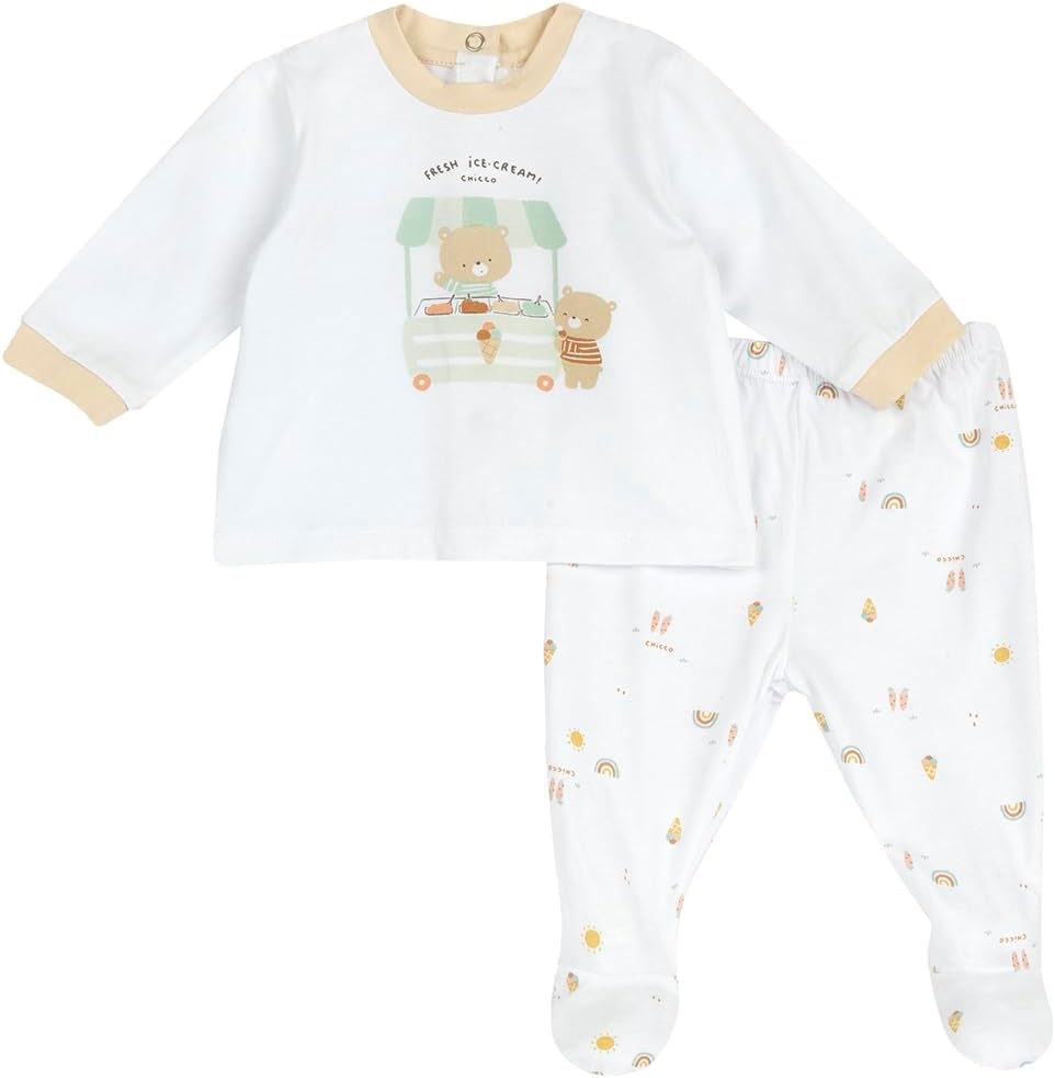 Chicco, Ensemble Bébé, Pantalon cache-cœur et pantalon à pieds en coton doux, idéal pour le printemps et l’automne, idées cadeaux nouveau-né, conçu en Italie, vêtementsbébé 0-24 mois