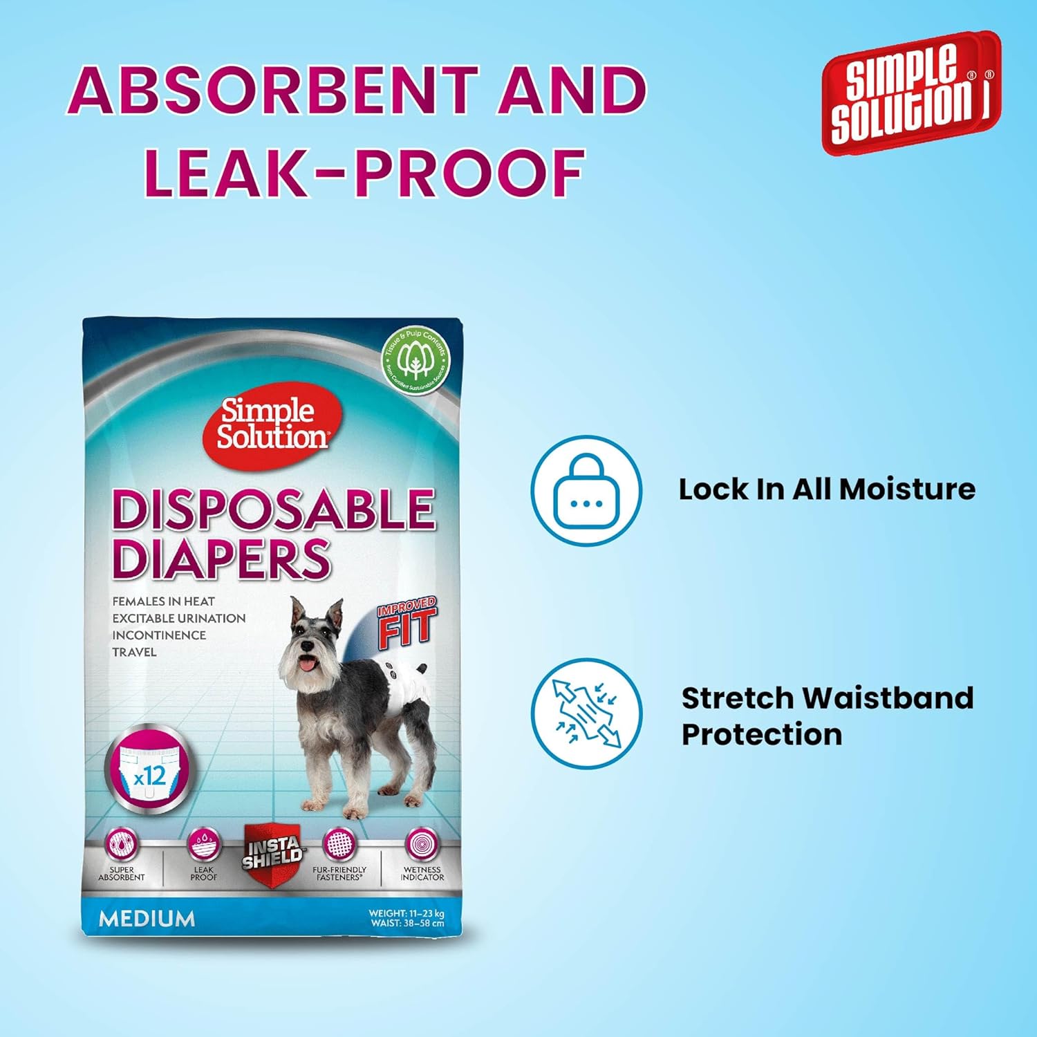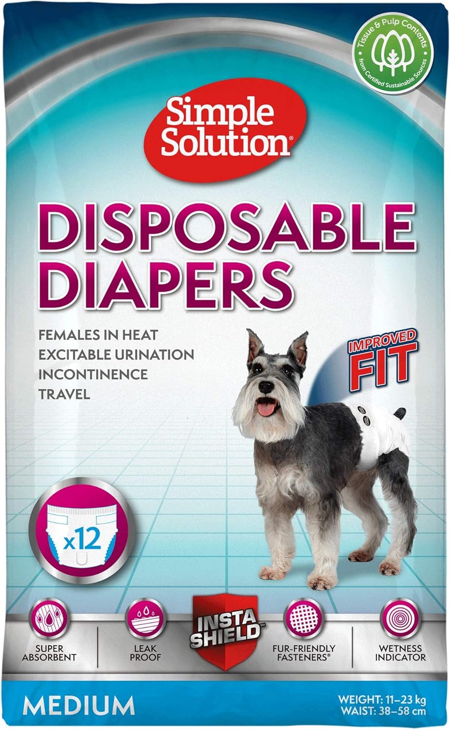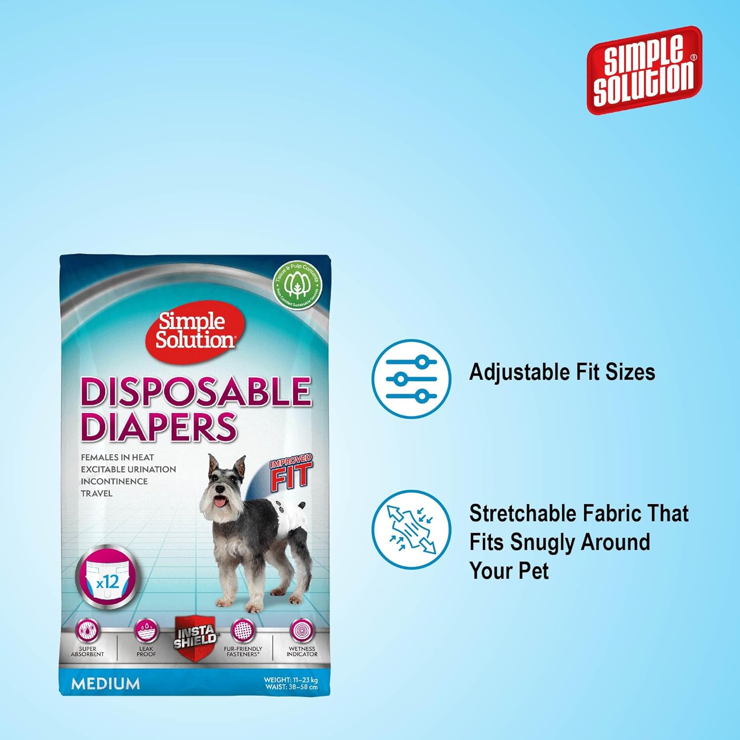 Couches jetables Simple Solution pour chiennes, couches anti-fuites super absorbantes avec indicateur d’humidité, paquet de 12