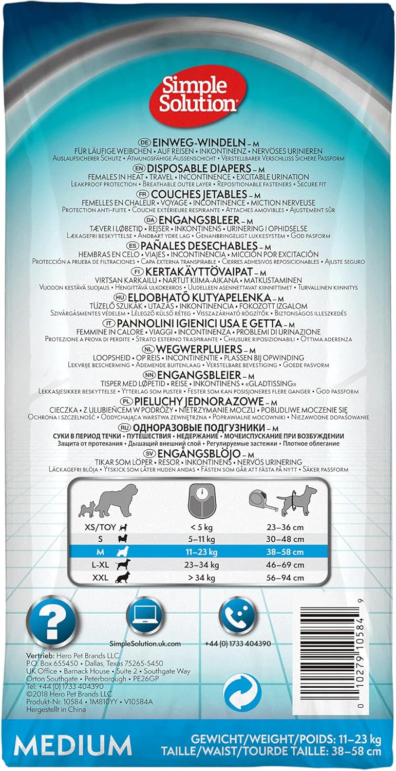 UN MEILLEUR AJUSTEMENT – Les nouvelles tailles réglables des couches jetables pour chiens Simple Solution Medium sont destinées aux chiennes pesant 11 à 23 kg et mesurant entre 15 et 58 cm. Ces couches pour chiennes sont fabriquées dans un tissu extensible qui s’adapte parfaitement à votre animal.