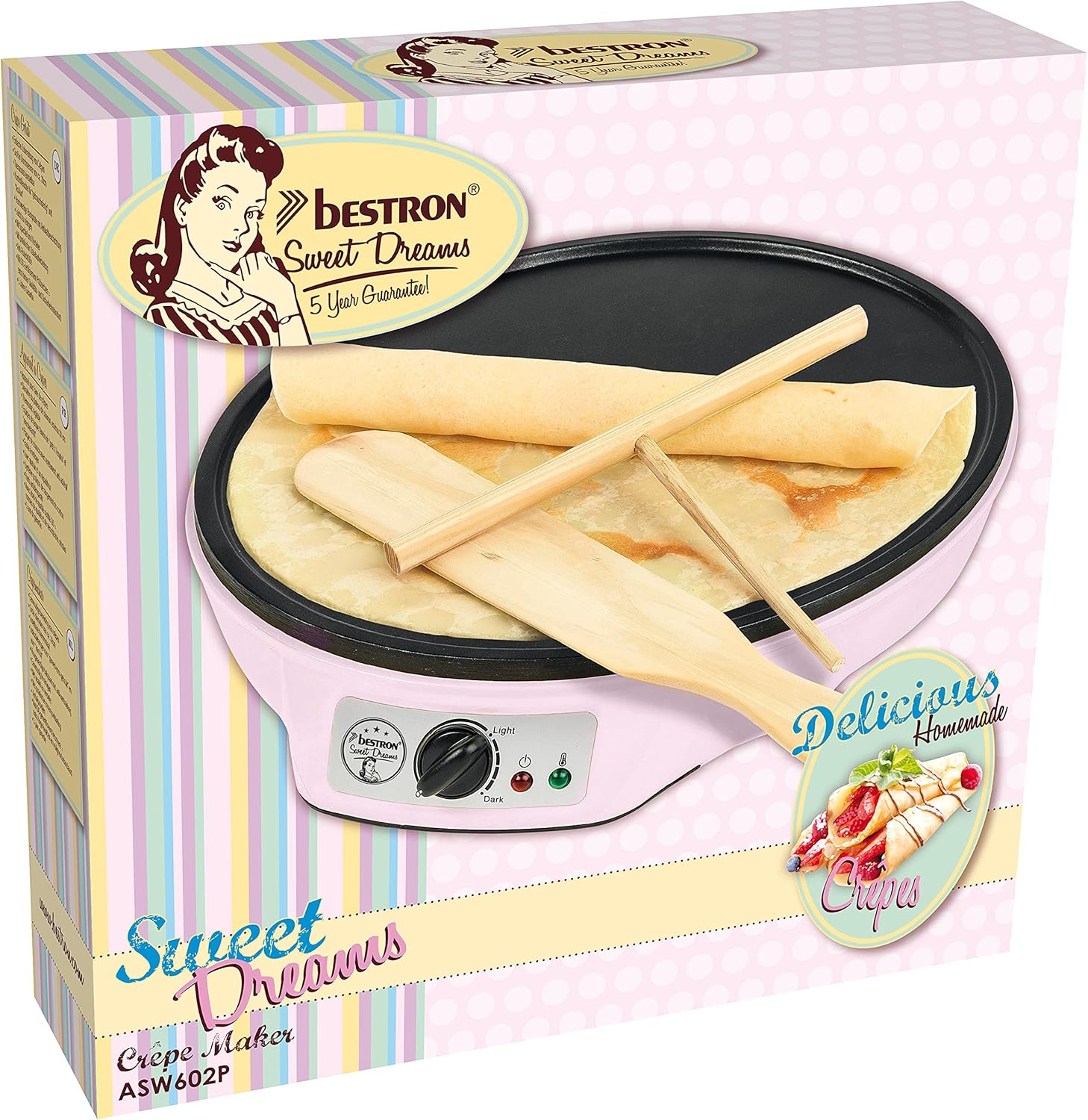 Crêpière électrique Bestron, crêpière pour crêpes Ø 30 cm, avec distributeur de pâte et spatule à crêpes, avec revêtement antiadhésif, 1000 watts, couleur : Rose