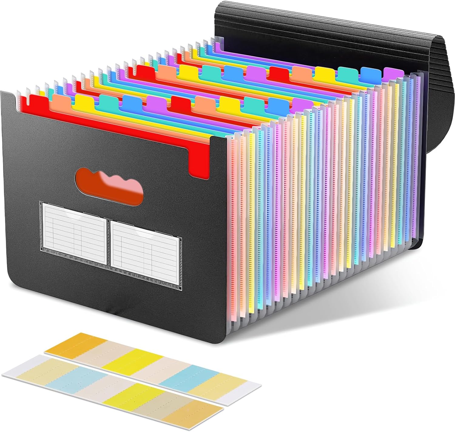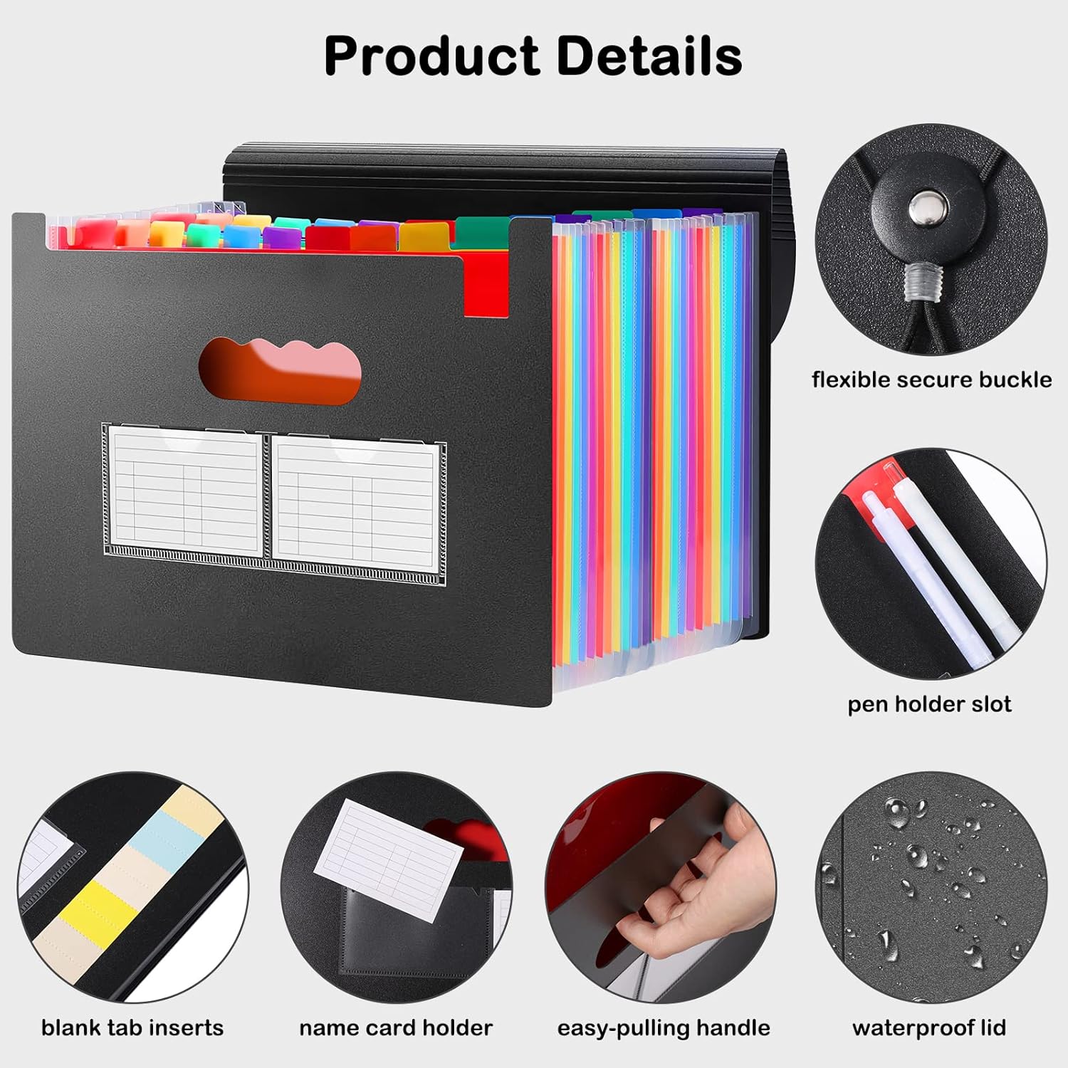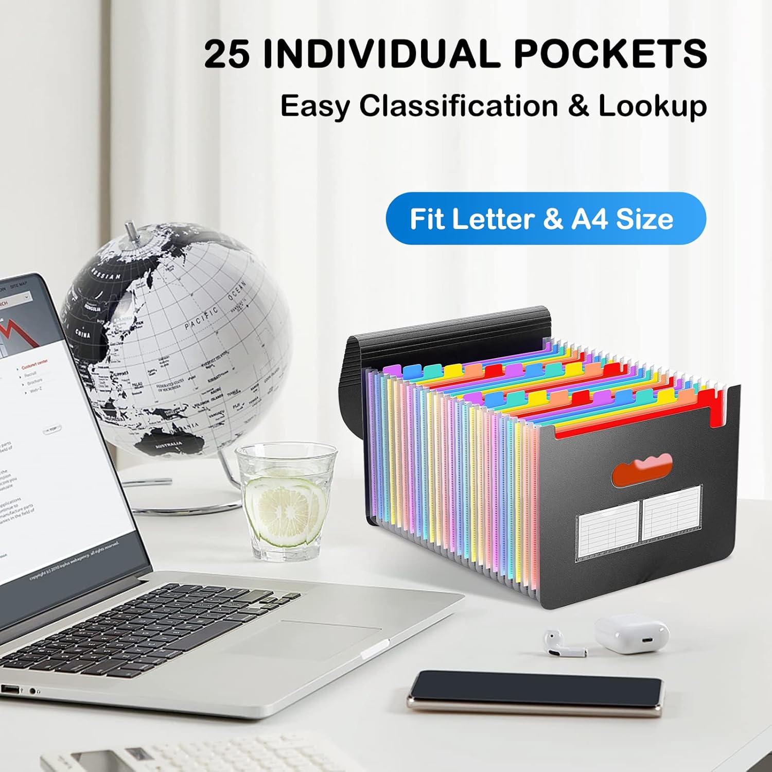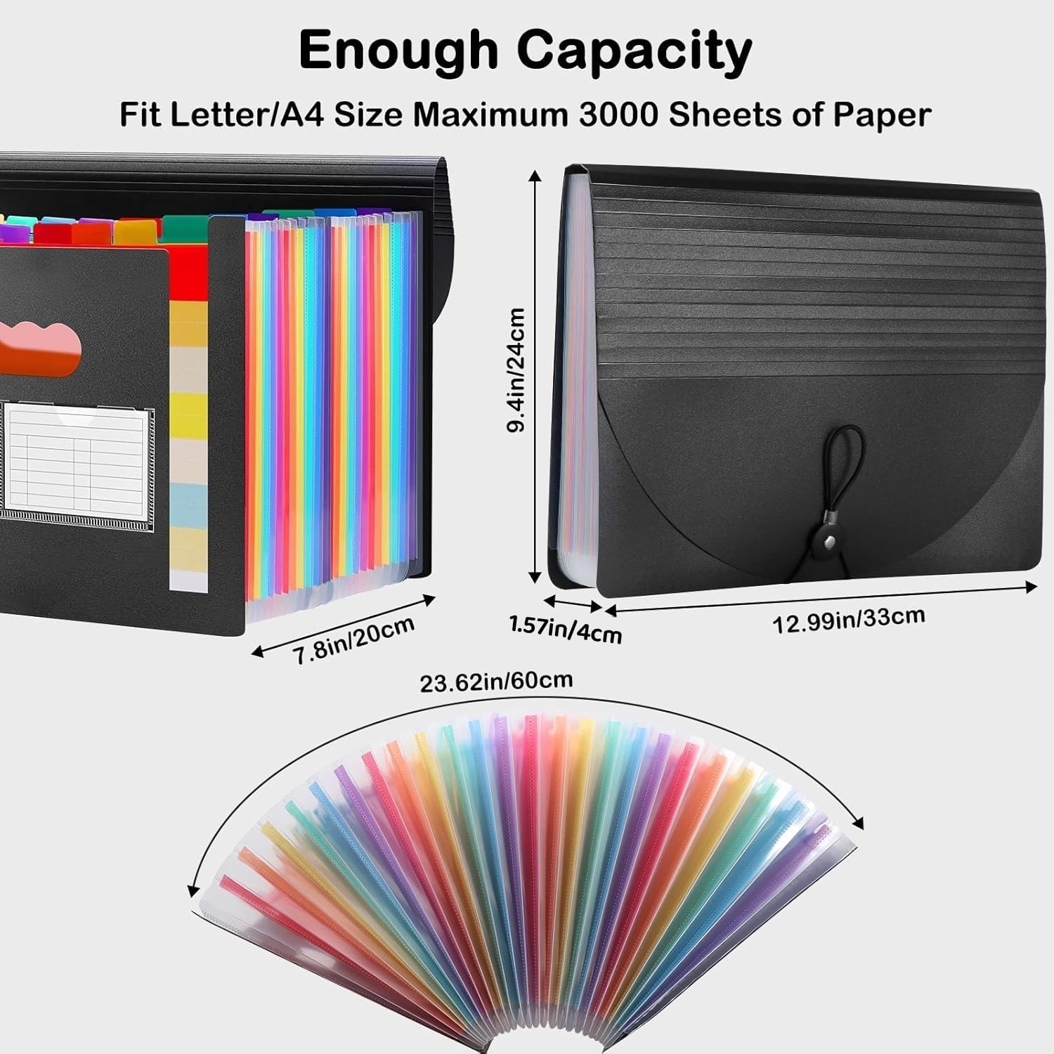 Extensible et grande capacité : le trieur de documents maintient les fichiers dans chaque emplacement séparés et bien organisés, adapté pour stocker des documents au format A4 et lettre. Il dispose de 25 pochettes individuelles, s’étend de 60 cm et peut contenir jusqu’à 3000 feuilles. Le contenu est facile d’accès lorsque ce dossier extensible est debout et entièrement étendu sur une table ou un comptoir.