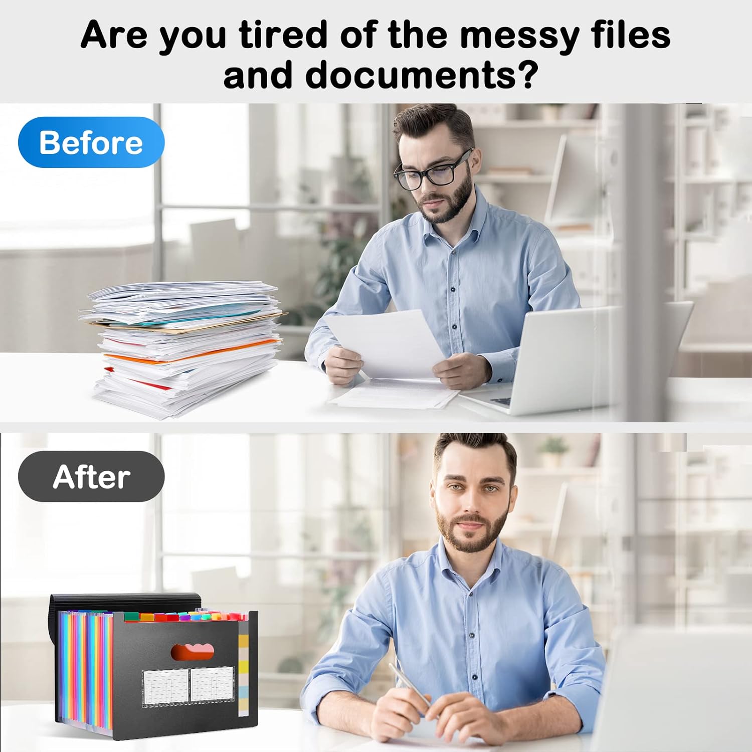 Multifonction : notre organisateur accordéon est idéal pour classer et stocker les documents fiscaux, les contrats, les factures, les reçus, les bons, les factures, les cartes et autres documents du quotidien. Ce porte-documents sera votre aide indispensable au bureau, à l’école, à la maison ou en voyage, ne faites plus jamais face à une pile de papiers en désordre !