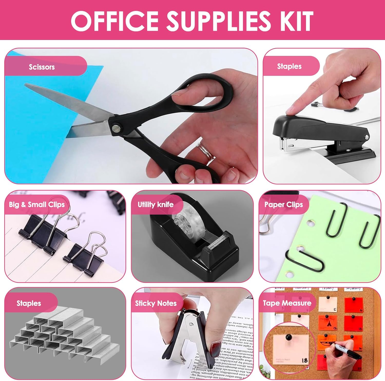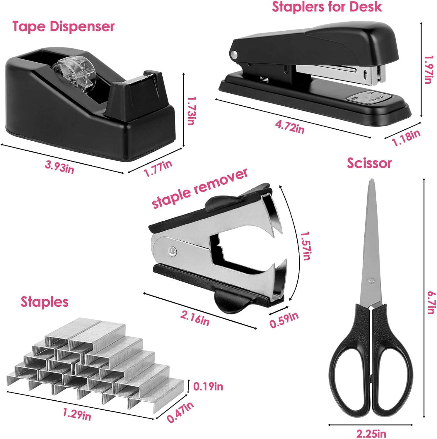 Large utilisation : cet ensemble de fournitures de bureau convient aux employés de bureau, aux étudiants, aux enseignants et aux designers, satisfaisant les besoins quotidiens de travail et d’étude. Parfait pour les applications d’agrafeuse de bureau.