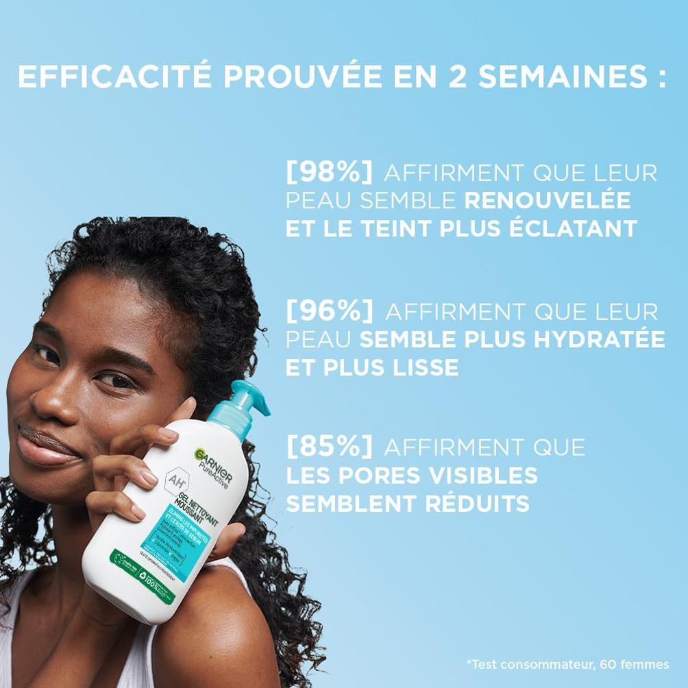 GEL NETTOYANT VISAGE : Le Gel Moussant Actif Garnier Pure élimine les saletés (maquillage, pollution), affine le grain de peau, tout en hydratant et en protégeant la barrière cutanée. Un élément essentiel de votre routine de soins de la peau.