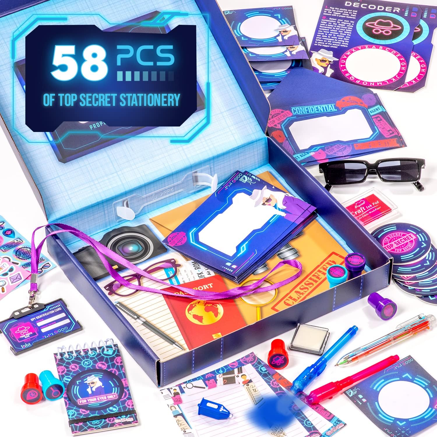 Ressemblez à un véritable agent secret avec les lunettes d’espion et la carte d’identité d’espion incluses dans le kit de rédaction de lettres.