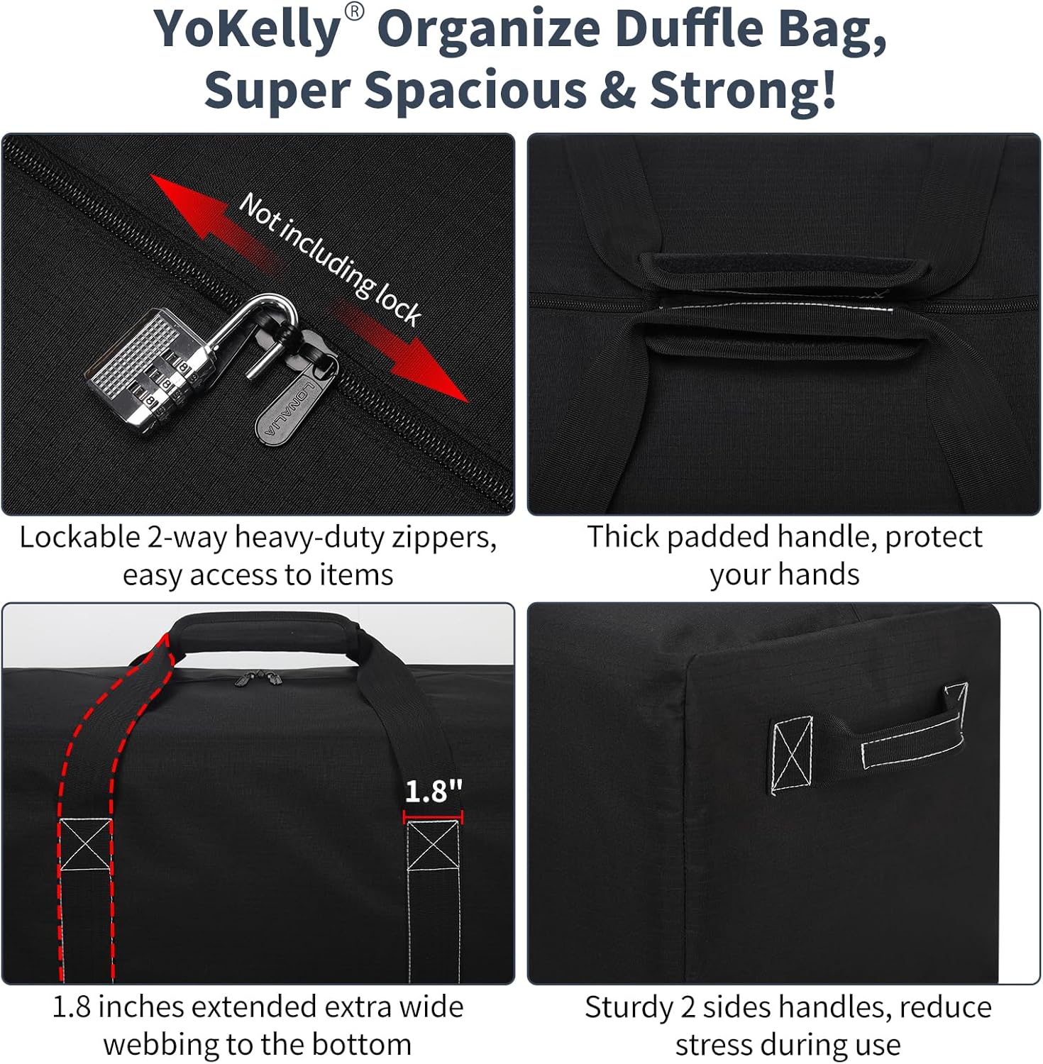TRANSPORT ET RANGEMENT FACILE Le sac de sport surdimensionné a des poignées rembourrées, 2 poignées latérales réduisent le stress pendant l’utilisation. Le sac de sport extra large peut être plié en 13 x 13 pouces lorsqu’il n’est pas utilisé, ce qui le rend pratique pour le rangement et le transport.