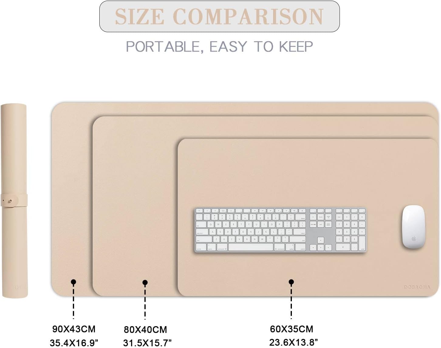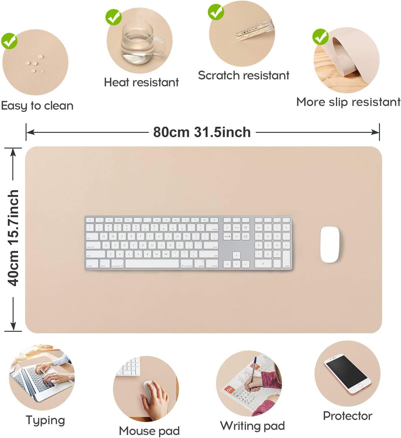 Grand tapis de souris étendu XL sous la main en cuir pour ordinateur portable, bloc d’écriture pour bureau/maison, PU imperméable + daim antidérapant 80 x 40 cm (beige)