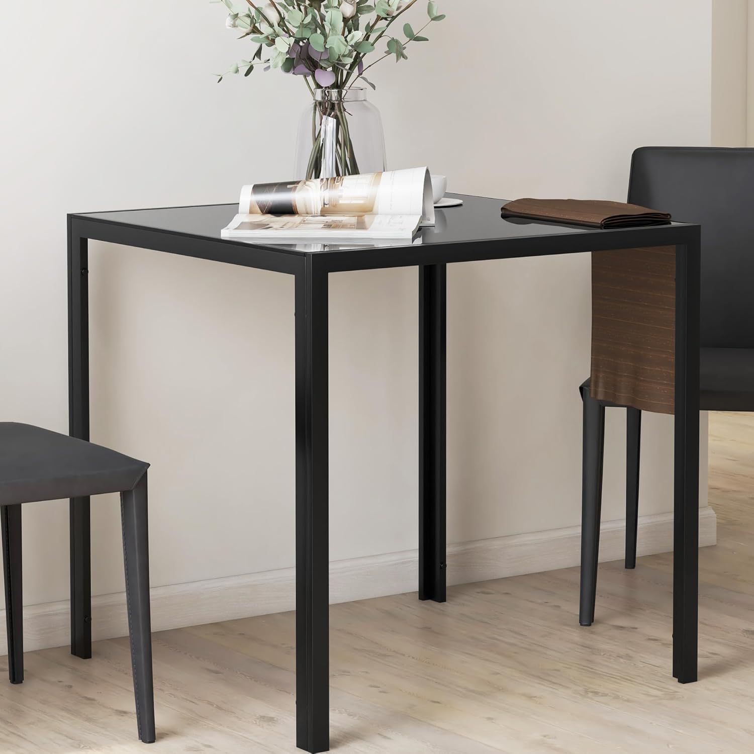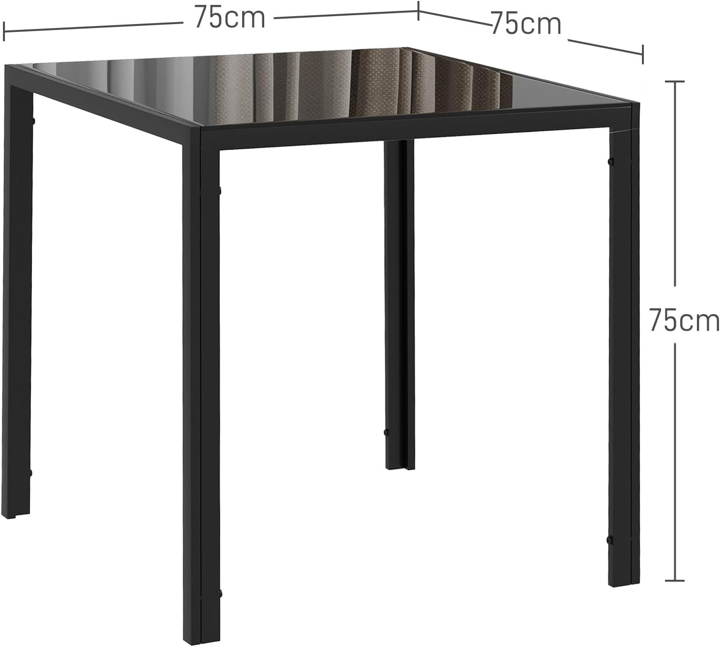 HOMCOM Table à manger carrée pour 2-4 personnes, 75 x 75 x 75 cm, table de cuisine avec plateau en verre trempé et pieds en métal, style moderne, noir