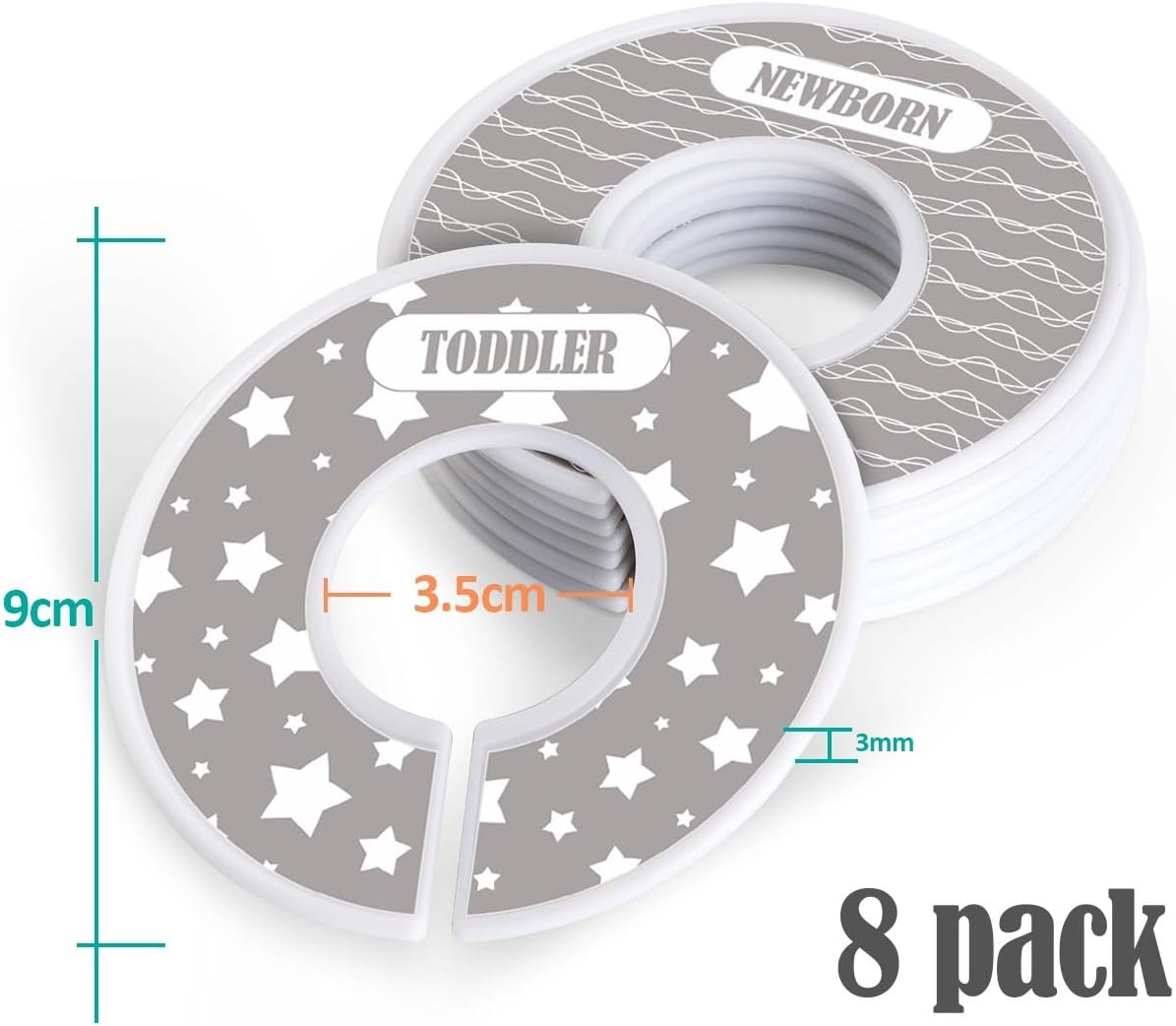 ilauke 8 séparateurs de garde-robe pour bébé | Cintres séparateurs double face pour organiser la garde-robe par tailles européennes | Compatible avec les rails standards