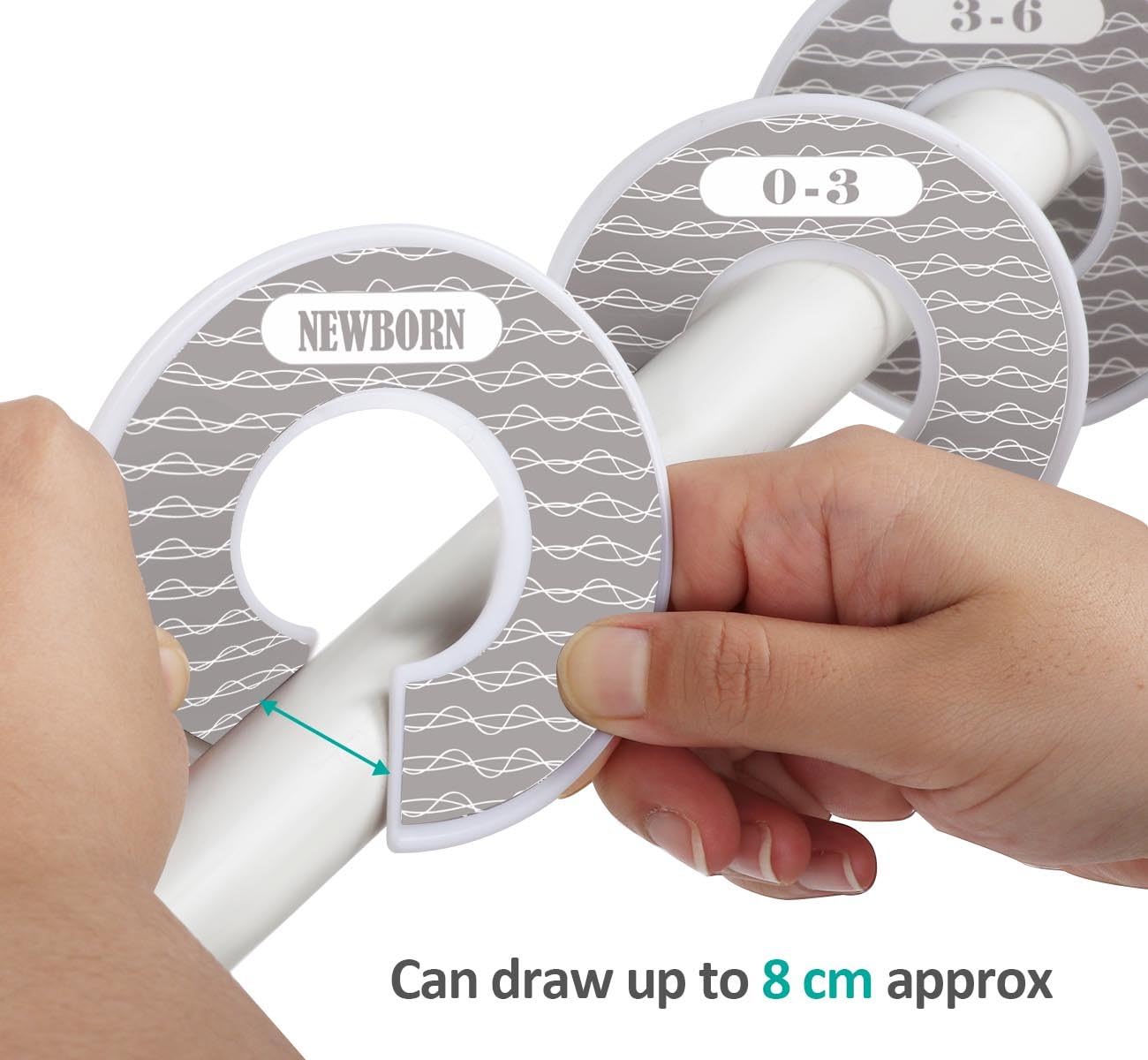 Notre diviseur de taille adopte un look bien conçu, avec deux motifs à votre choix. Le texte de Nouveau-né et tout-petit vous aide à classer rationnellement les vêtements de votre bébé et à trouver facilement celui que vous recherchez.