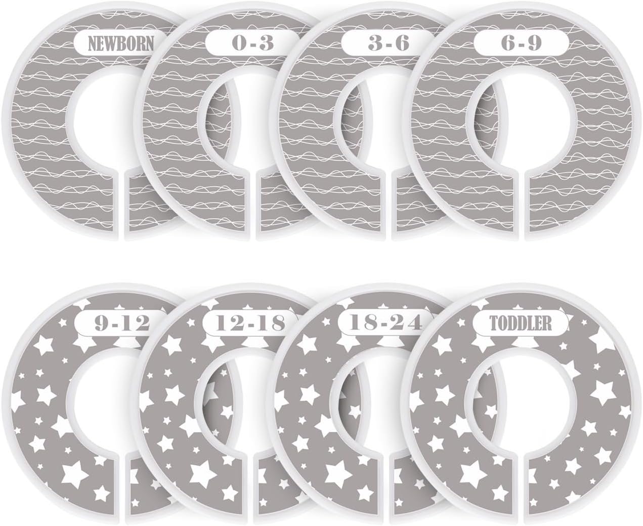 Vêtements de chambre de bébé : lot de 8 séparateurs de garde-robe pour bébé – Style unisexe moderne dans des tons pastel – idéal comme cadeau de naissance pour les petites filles et les garçons.