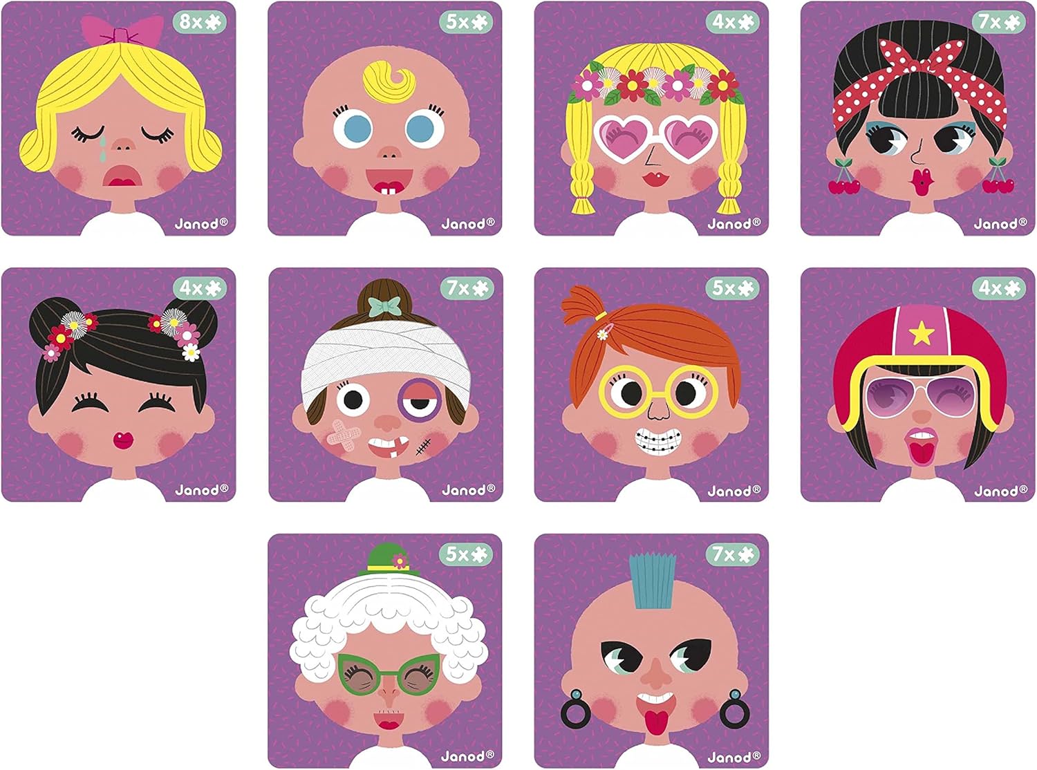 Janod – Magneti’Book Crazy Faces Girl – Jeu éducatif magnétique 55 pièces – À partir de 3 ans, J02717, Rose