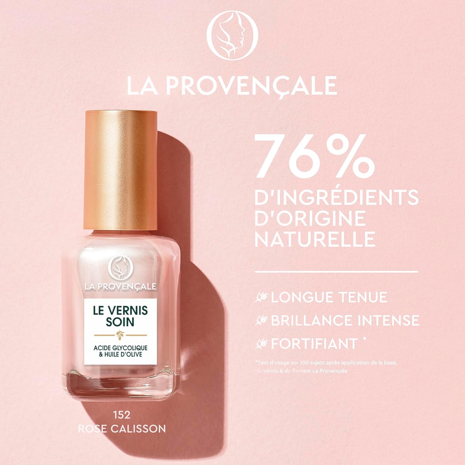 Résultat : Manucure aux couleurs brillantes et lumineuses pendant 7 jours**, des ongles plus durs et plus résistants** (test sur 100 sujets après application de la base, du vernis et du fixateur La Provençale)