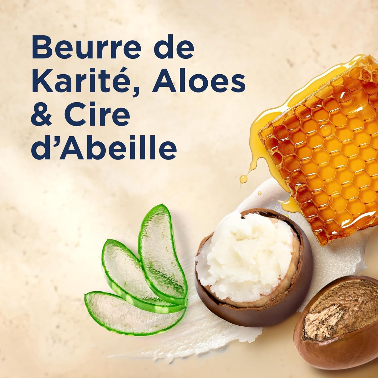 Des ingrédients sélectionnés pour leur efficacité, parmi lesquels : Le Beurre de Karité, obtenu de manière artisanale, L’Aloès, plante grasse dont la sève est utilisée depuis l’Antiquité, La Cire d’Abeille, ingrédient privilégié des recettes de beauté méditerranéennes.