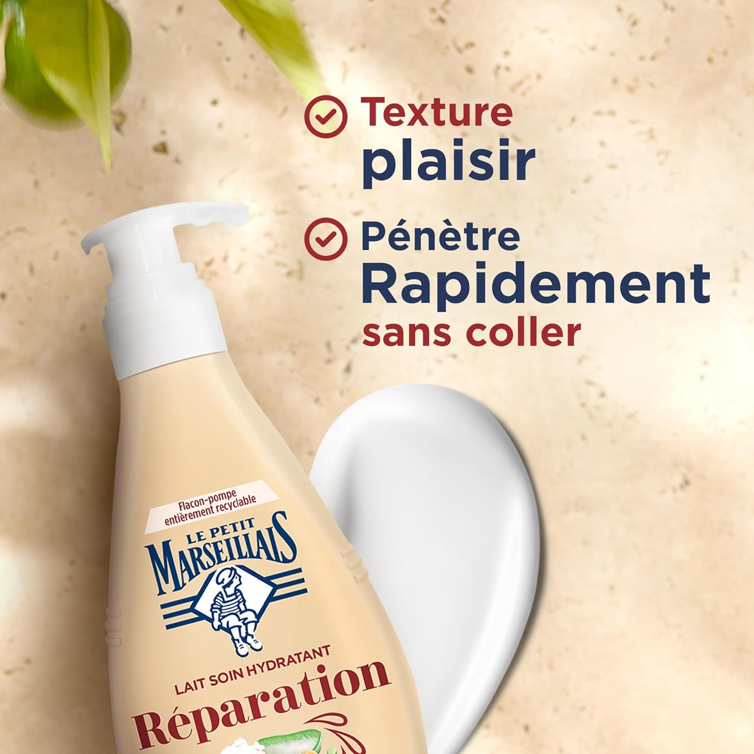 Le Petit Marseillais – Le Lait Corps Hydratant Réparateur Le Petit Marseillais a créé cette recette de soin et de réparation plaisir pour offrir à votre peau une réparation intense et 24 heures d’hydratation. Il combine des ingrédients efficaces dont le beurre de karité, l’aloès et la cire d’abeille pour une peau nourrie, belle et réparée pour 24 heures de confort. Les bienfaits en un coup d’œil : – Recette de soin Réparateur : répare et hydrate intensément la peau pendant 24 heures. – Efficace dès l’application : procure un bien-être et une sensation de confort extrême – Des ingrédients sélectionnés pour leur efficacité dont : Le Beurre de Karité, obtenu de manière traditionnelle, l’Aloès, plante grasse dont la sève est utilisée depuis l’Antiquité, la Cire d’Abeille, ingrédient fétiche des recettes de beauté méditerranéennes – Votre peau est heureuse : belle, nourrie et réparée pour 24 heures de confort. – Parfum exaltant et texture généreuse : le lait pénètre rapidement – Flacon pompe entièrement résistant – Testé dermatologiquement.