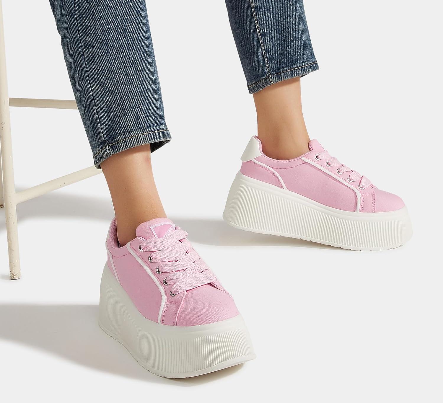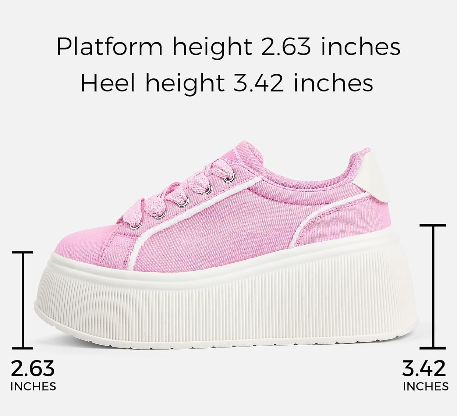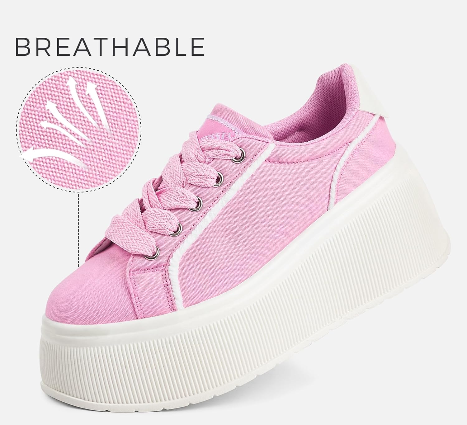 LUCKY STEP Baskets à plateforme pour femmes | Baskets classiques en toile avec semelle compensée décontractée basse rétro