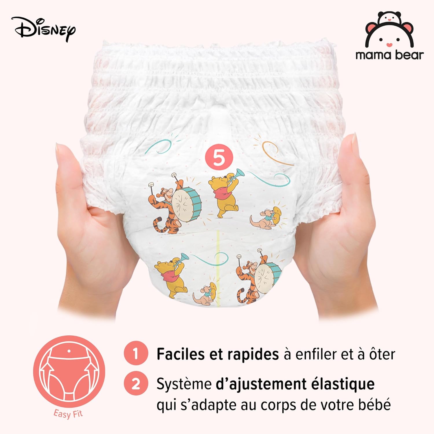 Marque Amazon – Couches Mama Bear Disney, Taille 5 (12-17 kg), Blanc, 140 pièces (2 paquets de 70) – PACK MENSUEL