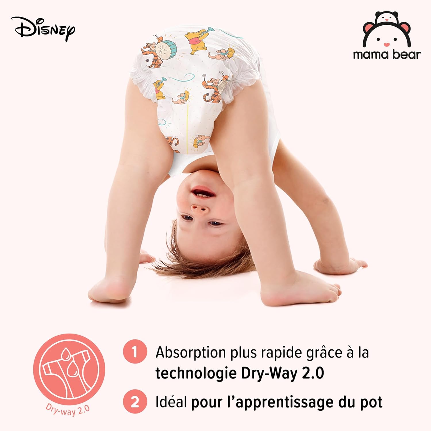 TECHNOLOGIE DRY-WAY 2.0 : Canaux d’absorption d’air pour que votre bébé se sente au sec et à l’aise
