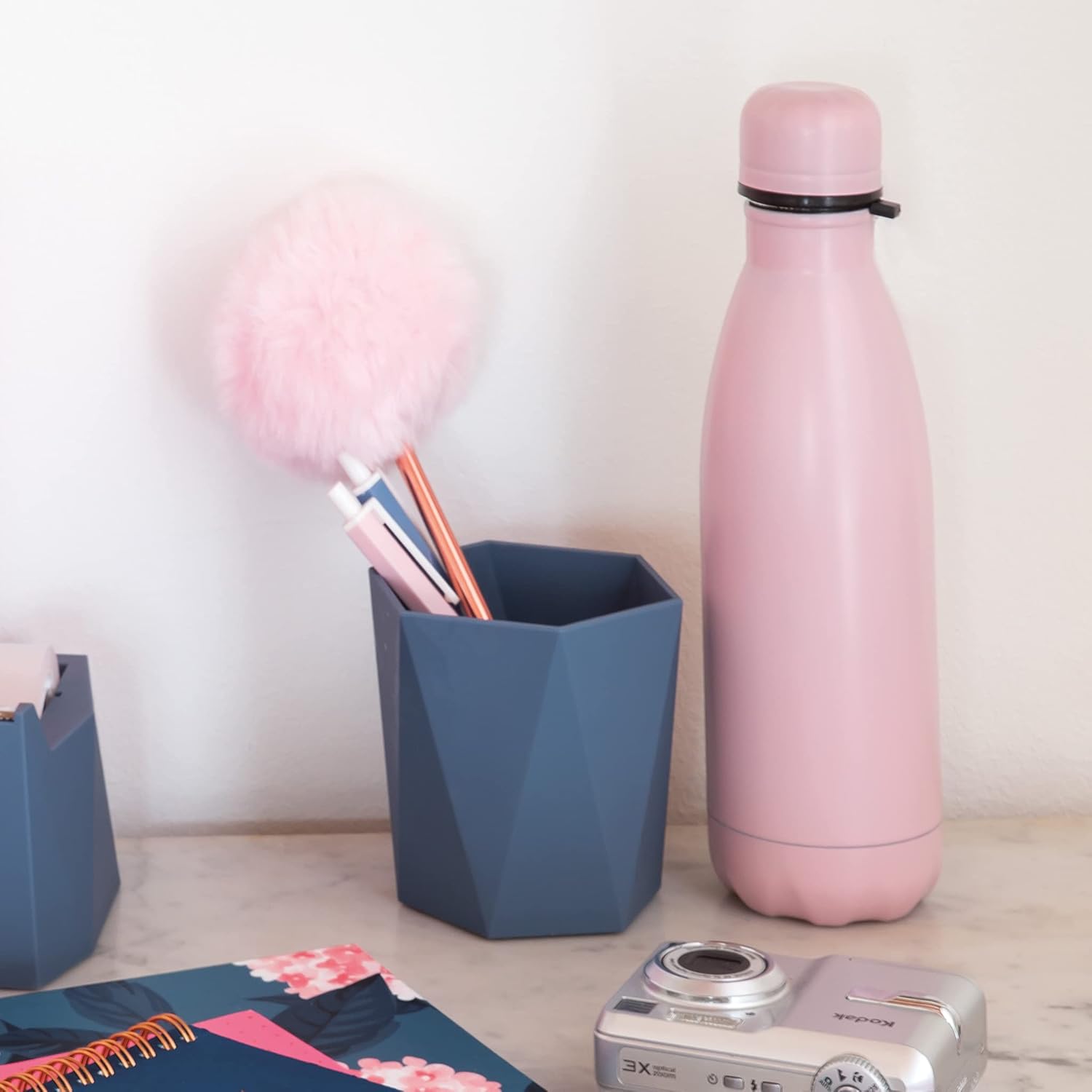 Design compact et fonctionnel : Avec des dimensions de 100 x 87 x 92,5 mm, ce porte-gobelet ou porte-crayon s’adapte parfaitement aux bureaux, coiffeuses ou petits espaces, optimisant l’espace sans sacrifier la capacité de stockage.