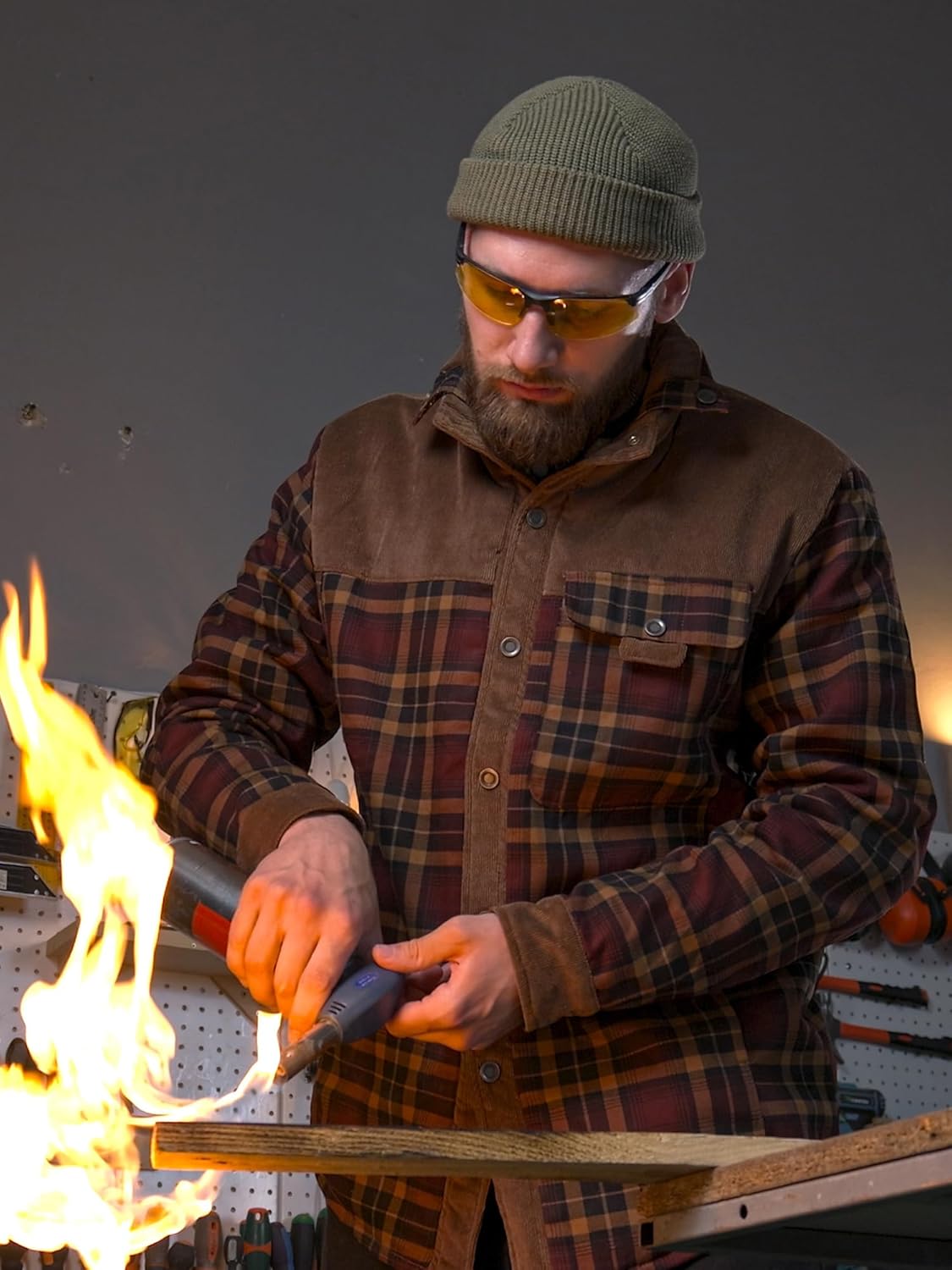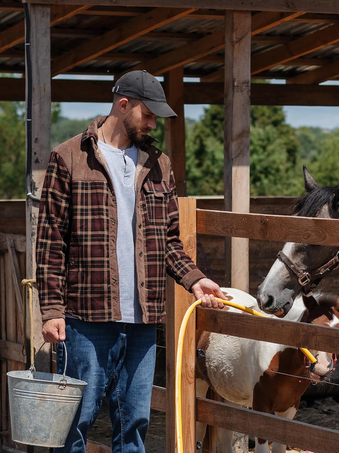 Mr.Stream Veste Sherp décontractée à manches longues en flanelle avec boutons en fourrure pour homme