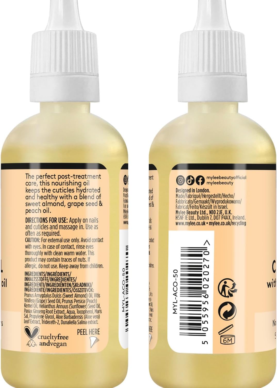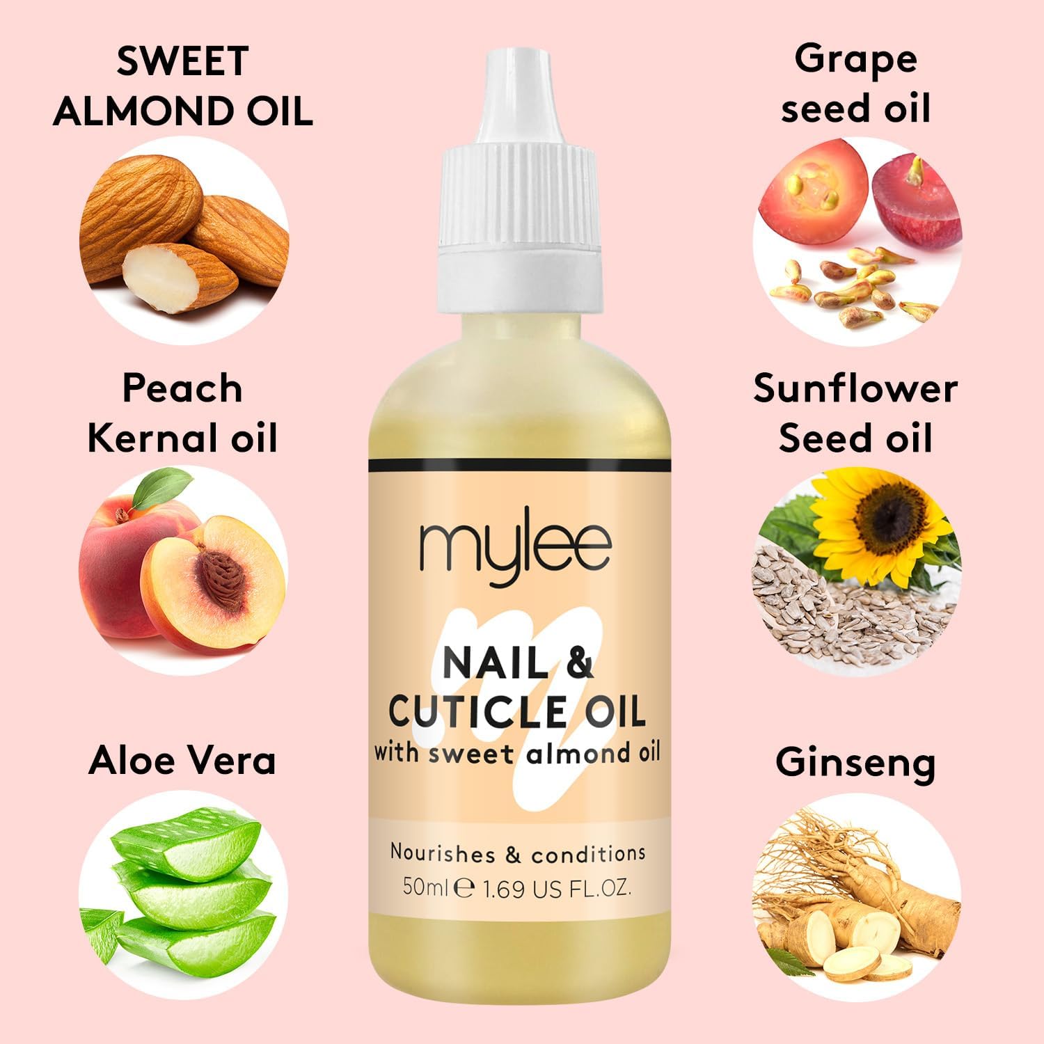 Mylee Huile d’amande douce pour ongles et cuticules 50 ml – Hydratation profonde et nourrissante pour cuticules, non grasse, sans résidu collant, légèrement parfumée à l’huile d’amande
