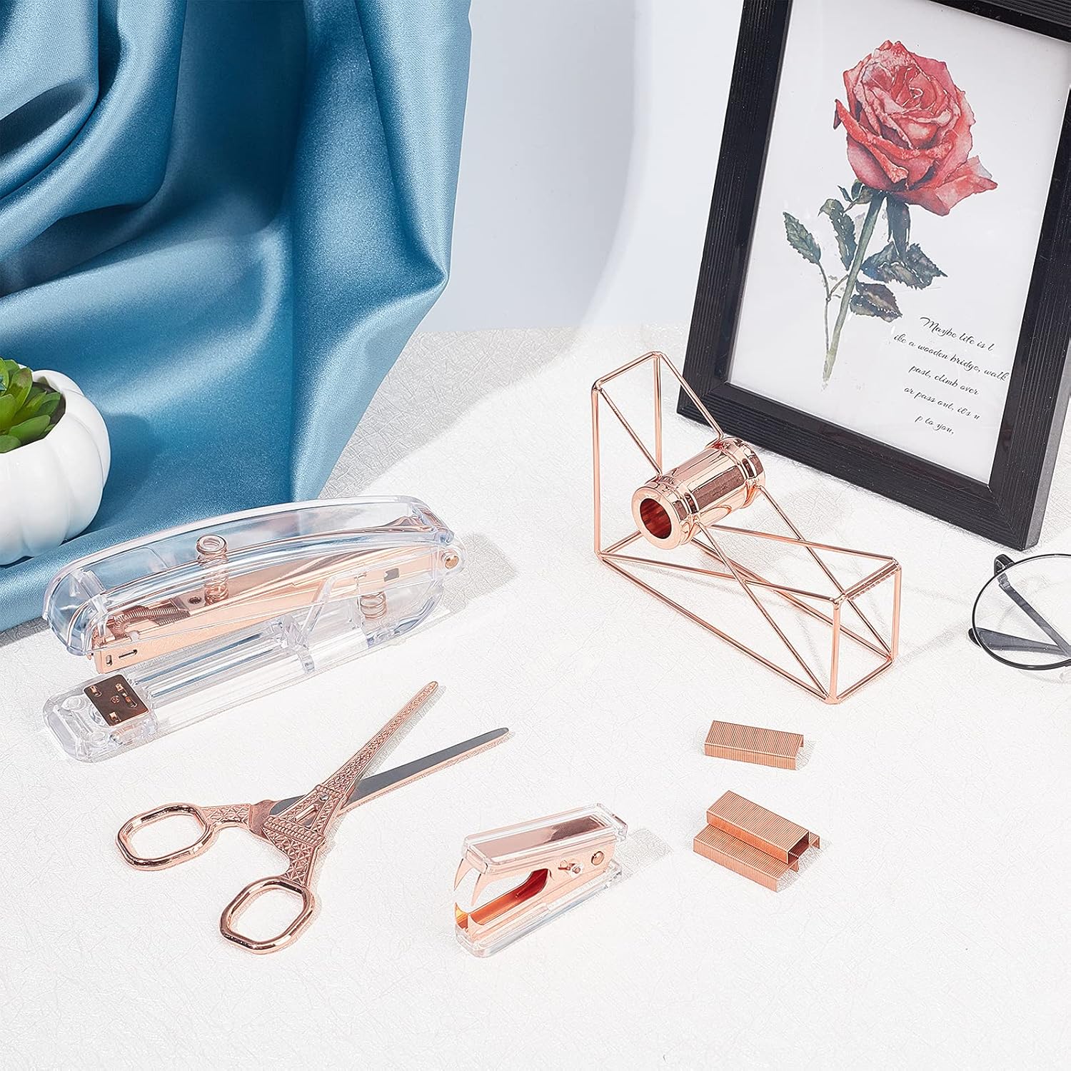 DESIGN DE LUXE – Ils sont tous plaqués d’une belle et brillante couleur or rose. Le kit de papeterie de bureau est composé d’acrylique transparent et d’or rose. La couleur élégante et luxueuse en fait non seulement des outils de bureau utiles, mais aussi des décorations de bureau attrayantes.