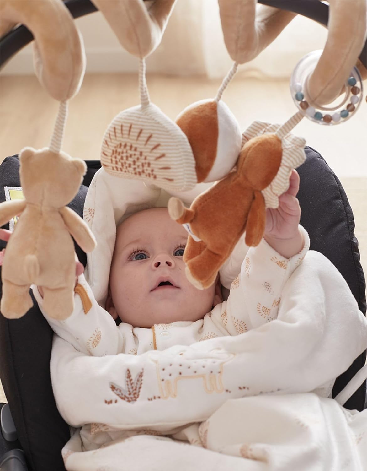 Un jouet qui favorise l’éveil : Ce jeu d’éveil en spirale est idéal pour stimuler les sens de votre enfant de manière ludique et pour le divertir lors de ses déplacements dans son parc ou lors d’une balade en voiture ou en poussette.