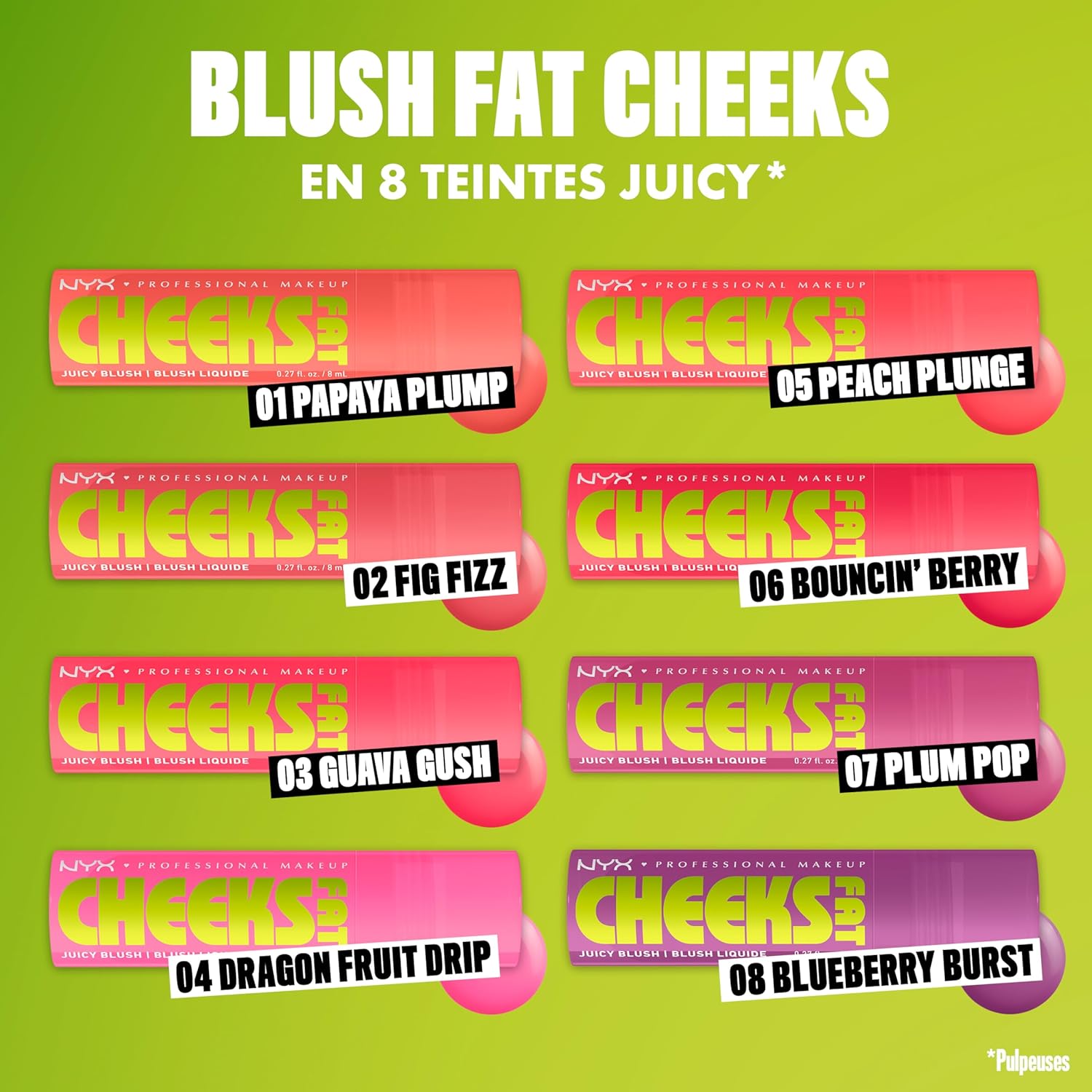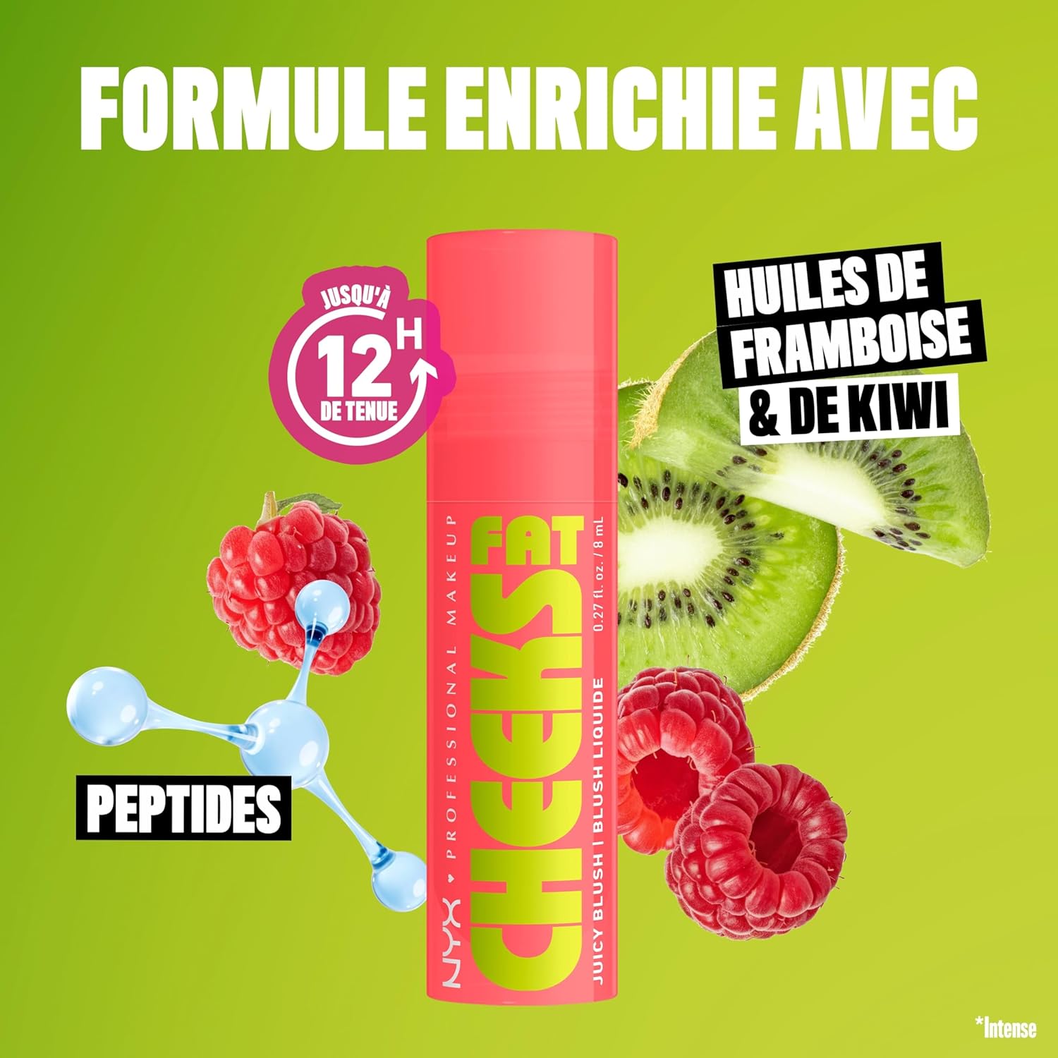 Contenu : 1 x NYX Professional Makeup Fat Cheeks Blush Liquide Teinté et Hydratant, Longue Tenue, Teinte : Peach Plunge