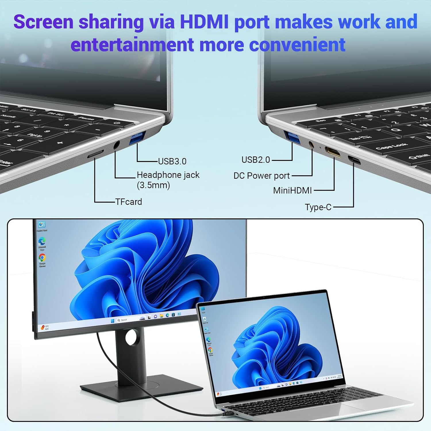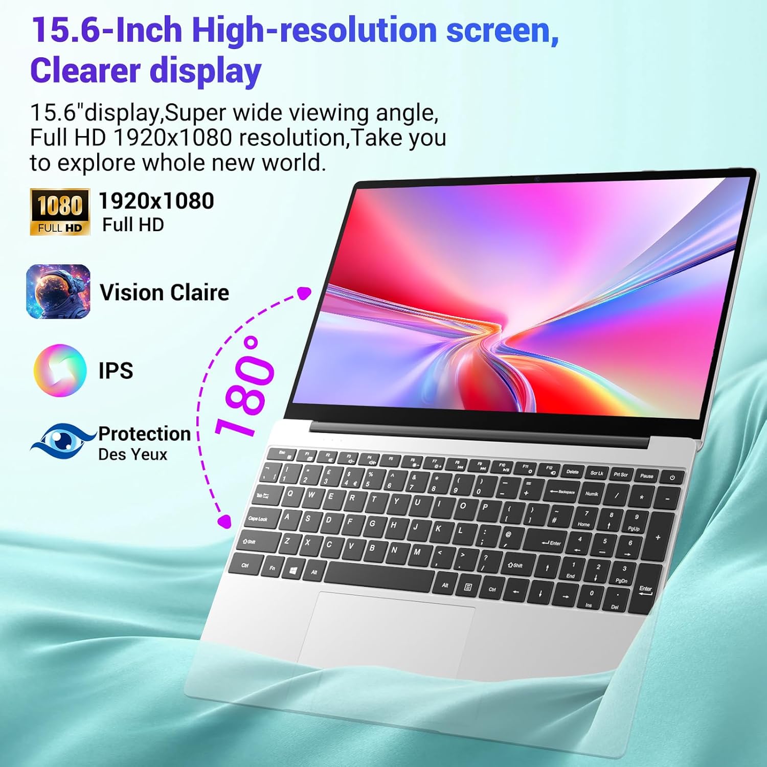 Écran large de 15,6 pouces – Une expérience visuelle plus vive : doté d’un cadre ultra fin avec un rapport écran/corps de 16:9, il prend en charge l’affichage d’une large gamme de couleurs sRGB à 100 %. Avec une résolution HD de 1920 × 1080 et un mode de protection des yeux, il filtre efficacement la lumière bleue pour réduire la fatigue visuelle causée par une utilisation prolongée. La caméra frontale 720P garantit des images nettes et détaillées, ce qui en fait un choix idéal pour les appels vidéo, les réunions en ligne et les vidéoconférences.