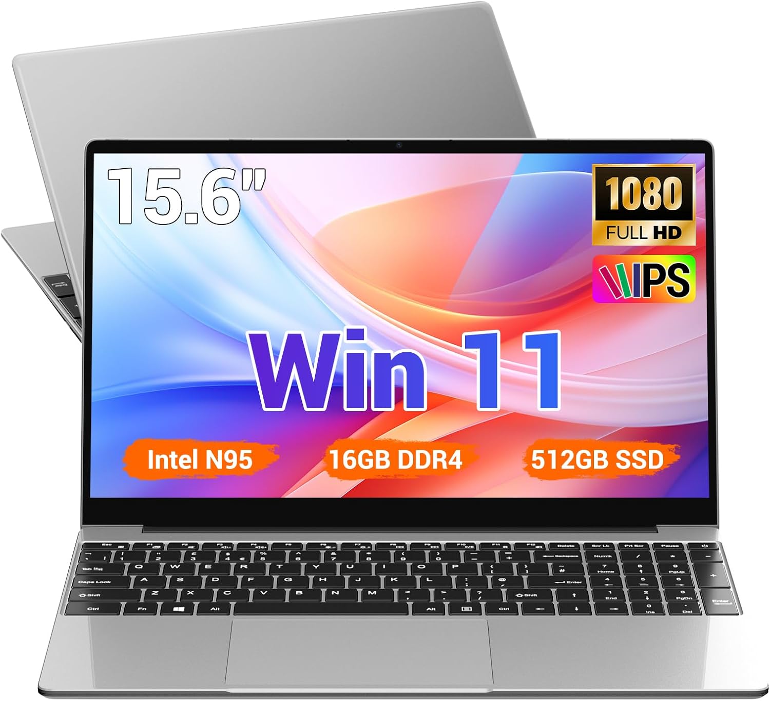 Ordinateur portable 15,6 pouces, 16 Go DDR4 512 Go SSD TF 1 To, N95 (jusqu’à 3,4 GHz), Win 11, 1920 x 1080 FHD, WiFi 5, USB 3.0, webcam, mini HDMI, ordinateur portable étudiant/professionnel