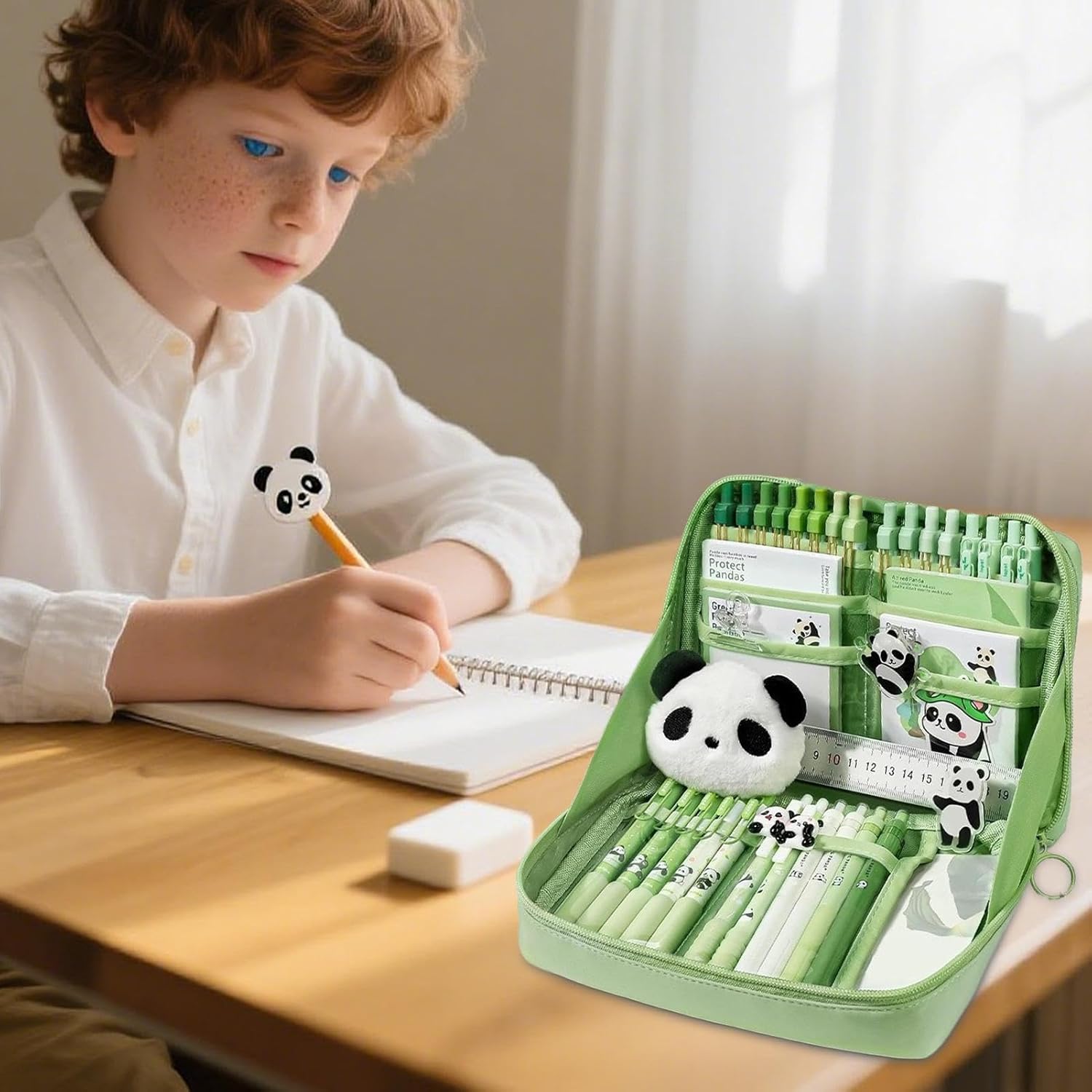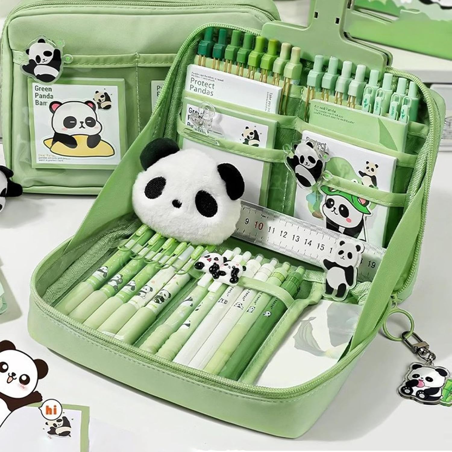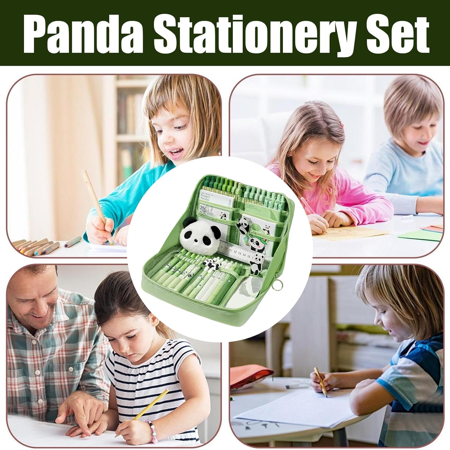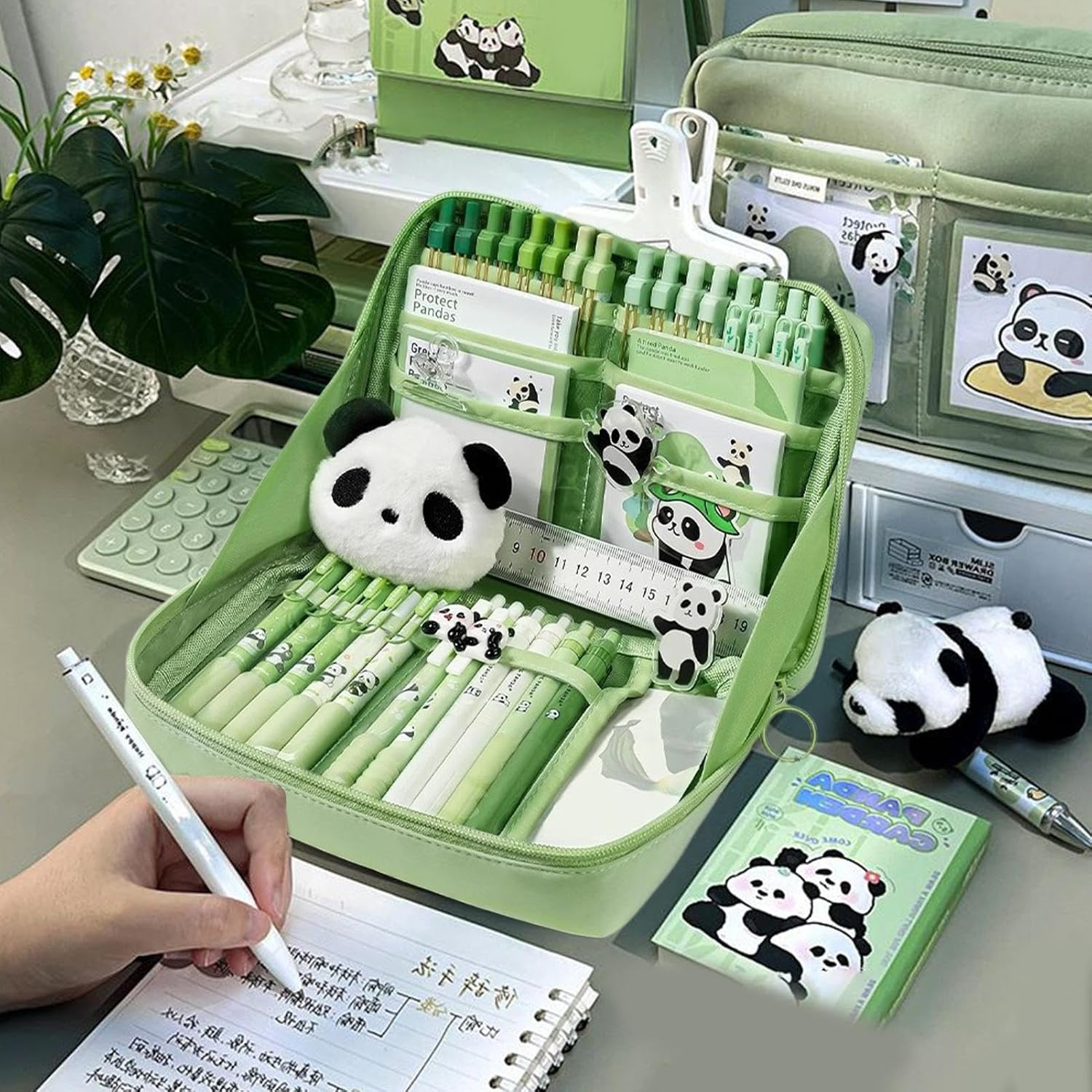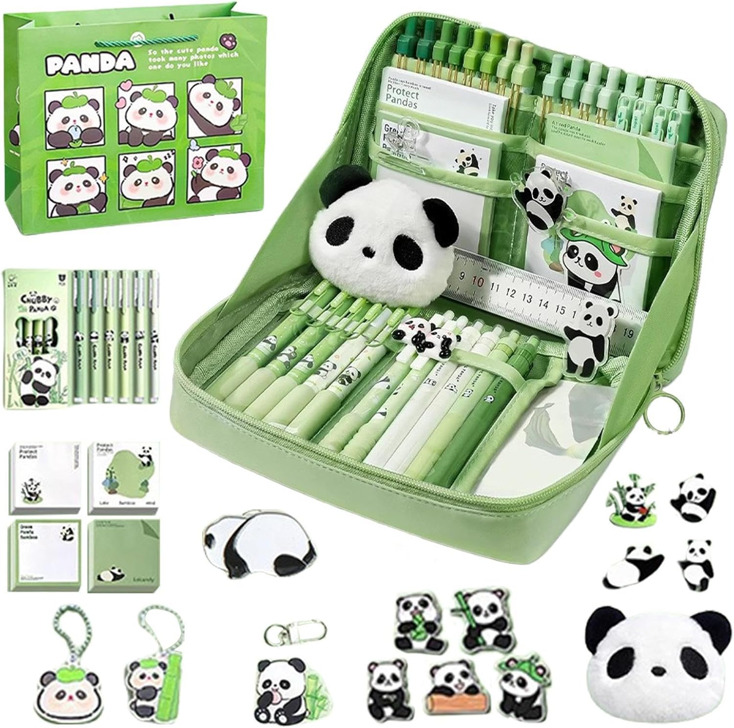 Papeterie Panda Fille, Trousse à Crayons avec Papeterie Incluse, Cartable Panda, Papeterie Mignonne (Sac Cadeau, Style Clip Aléatoire), 33,5 x 28 x 11 cm