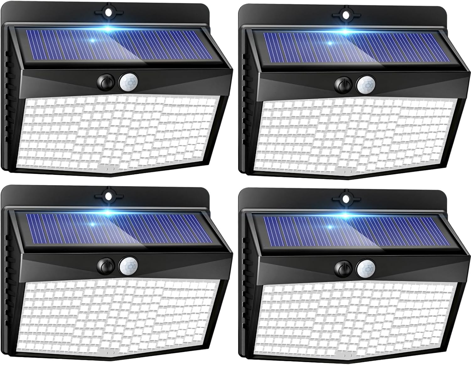 Peasur Lot de 4 détecteurs de mouvement extérieurs LED avec détecteur, 3 modes/projecteur solaire étanche, éclairage extérieur pour jardin, mur, garage, blanc froid