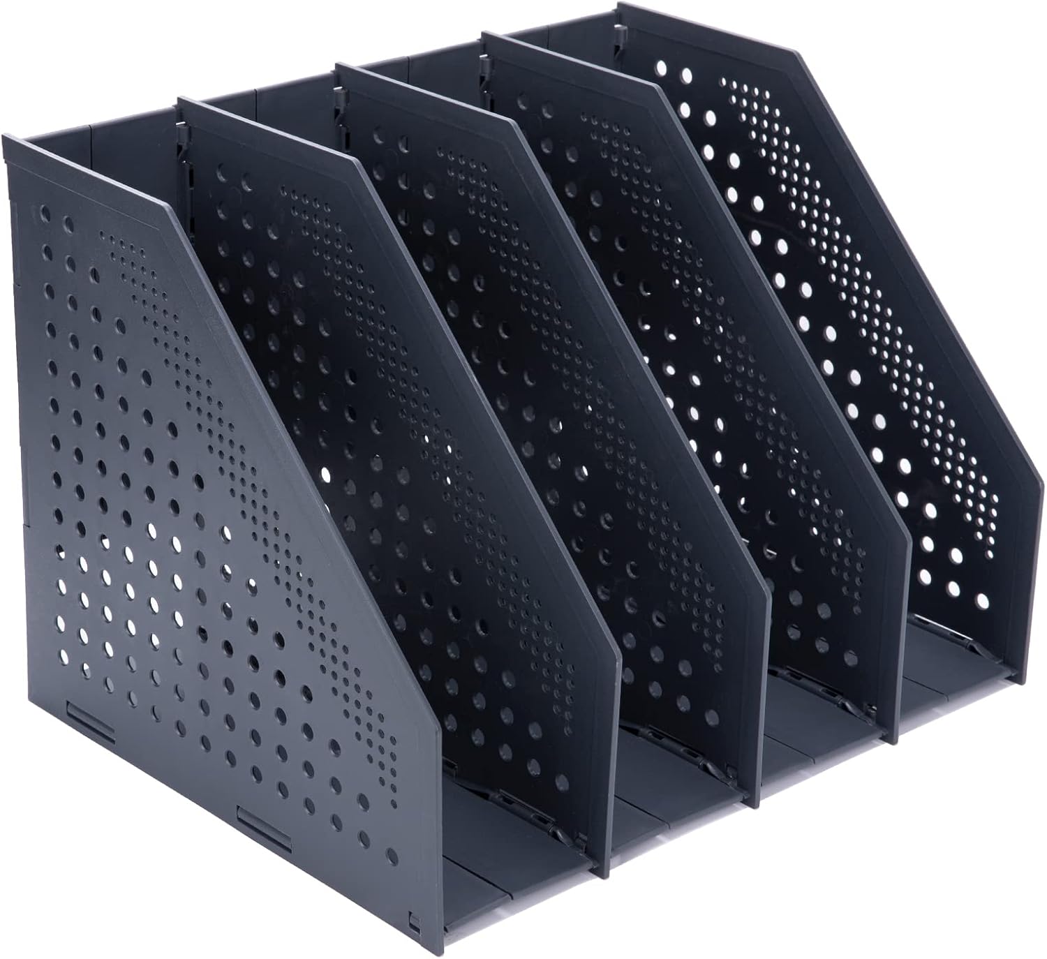 Porte-revues pliable, porte-revues de bureau avec 4 compartiments, dossiers de magazines de grande capacité, rangement vertical pour papier A4 et plus, gris foncé