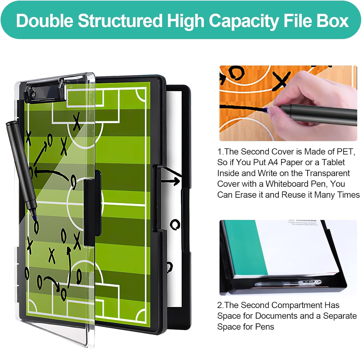 💕【Rangement multifonctionnel】 : grande structure à deux niveaux, compartiment supérieur pour les notes et les cartes postales, compartiment inférieur pour les documents et les cahiers, utilisation efficace de l’espace de stockage, couvercle en PET, durable, écrivez sur le couvercle transparent avec un stylo pour tableau blanc, effaçable et réutilisable, peut être utilisé pour l’entraînement et l’entraînement tactique dans les sports d’équipe tels que le football et le baseball.