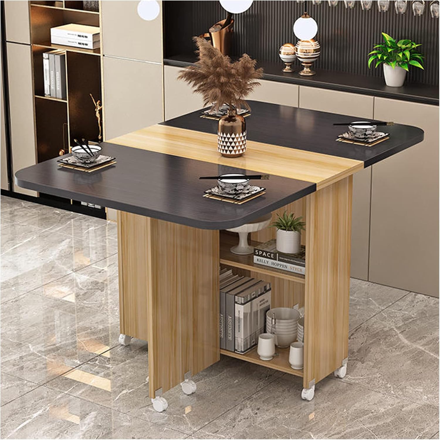 Table à manger pliante avec abattant, étagère de rangement à 2 niveaux, table de salle à manger multifonctionnelle, peu encombrante, pour cuisine, chambre à coucher, salon, idéale pour les petits espaces