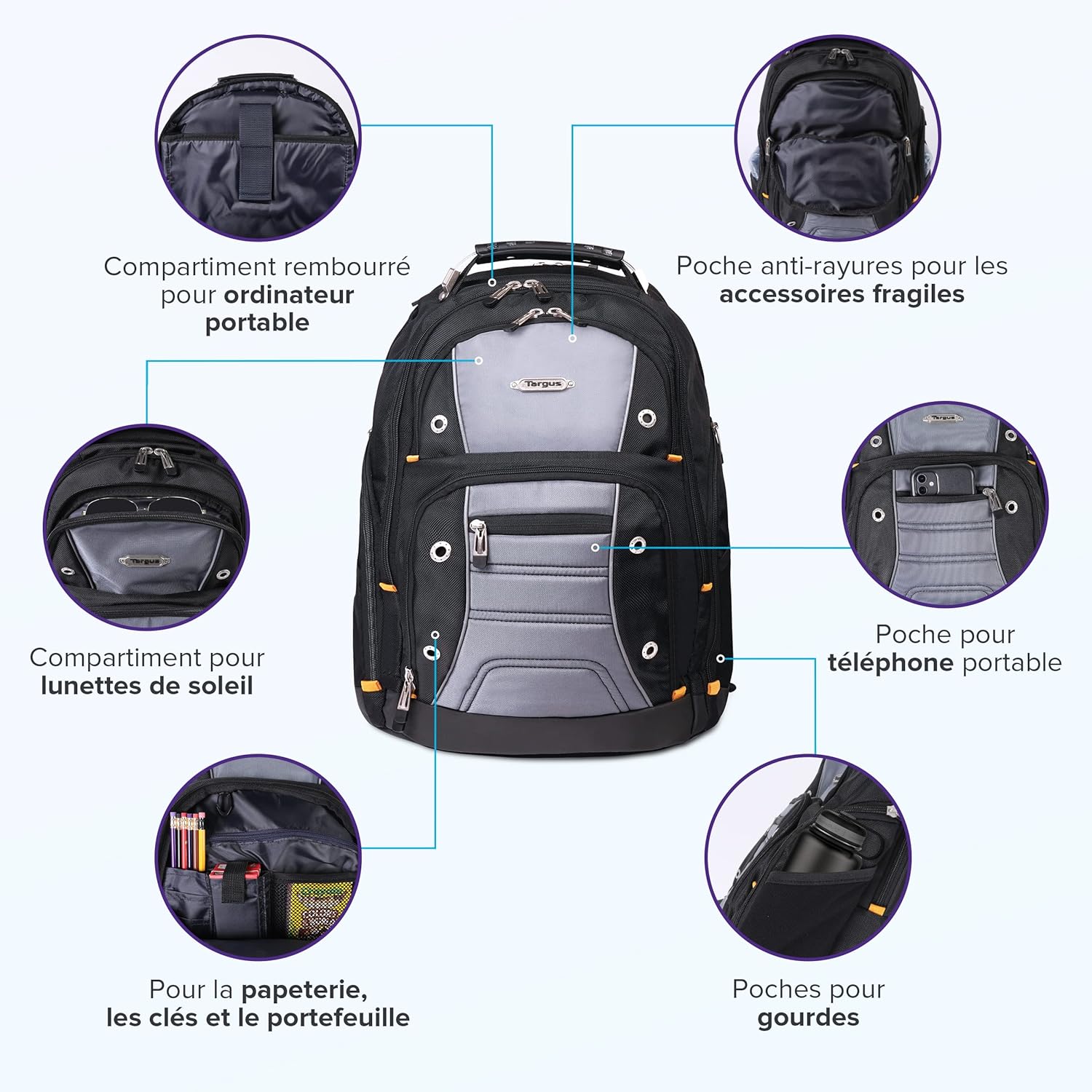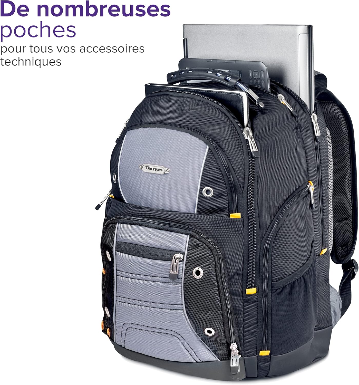Le sac à dos Targus Drifter, un sac extrêmement robuste et durable conçu pour transporter et protéger les ordinateurs portables avec écrans jusqu’à 16″, offre des compartiments spacieux et de nombreuses poches pour ranger vos affaires. Un compartiment rembourré pour ordinateur portable maintient votre appareil en sécurité, séparé des autres objets. Le compartiment principal généreux comprend un séparateur et une poche pour accessoires en filet. Derrière la poignée avant renforcée, la poche anti-rayures est idéale pour ranger des objets fragiles tels que des lunettes.
