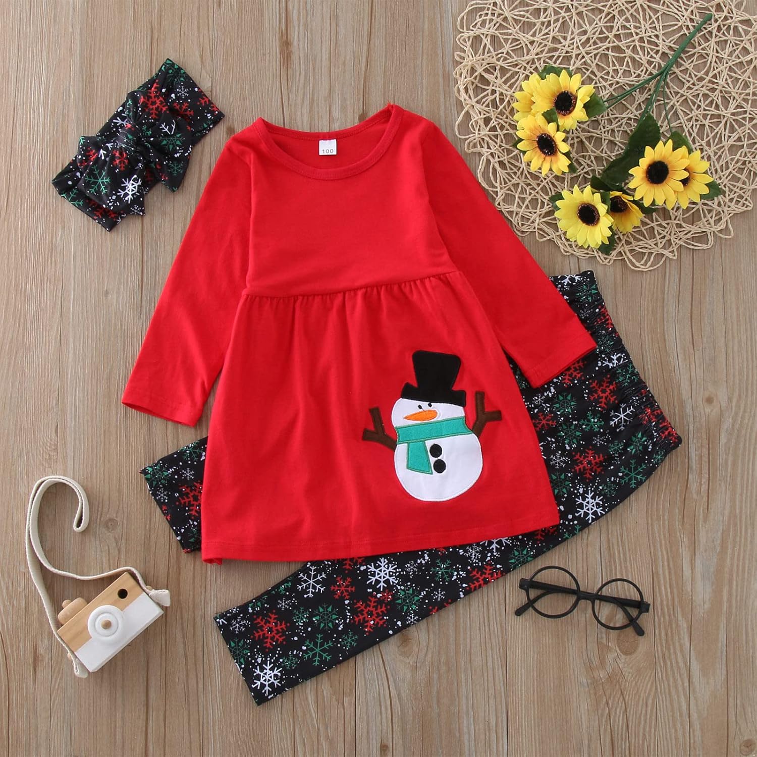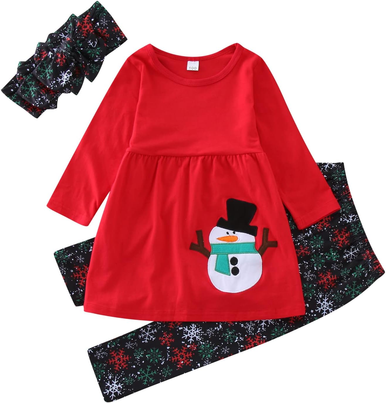 Tenues de Noël pour enfants en bas âge fille – Tunique à manches longues – Bonhomme de neige – Pantalon avec bandeau – Vêtements de Noël et du Nouvel An – Costumes de Noël à la mode