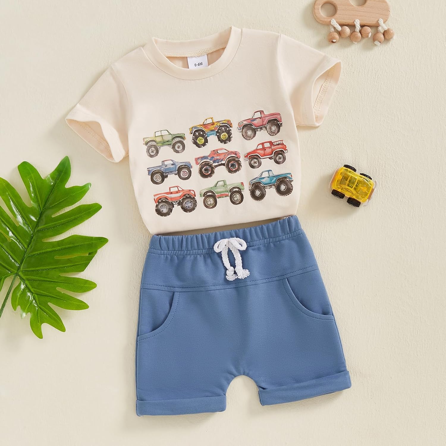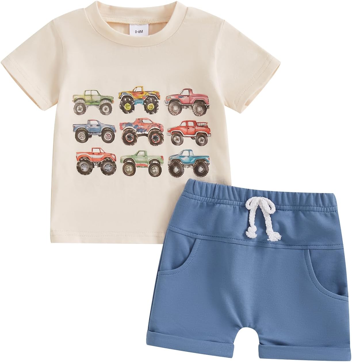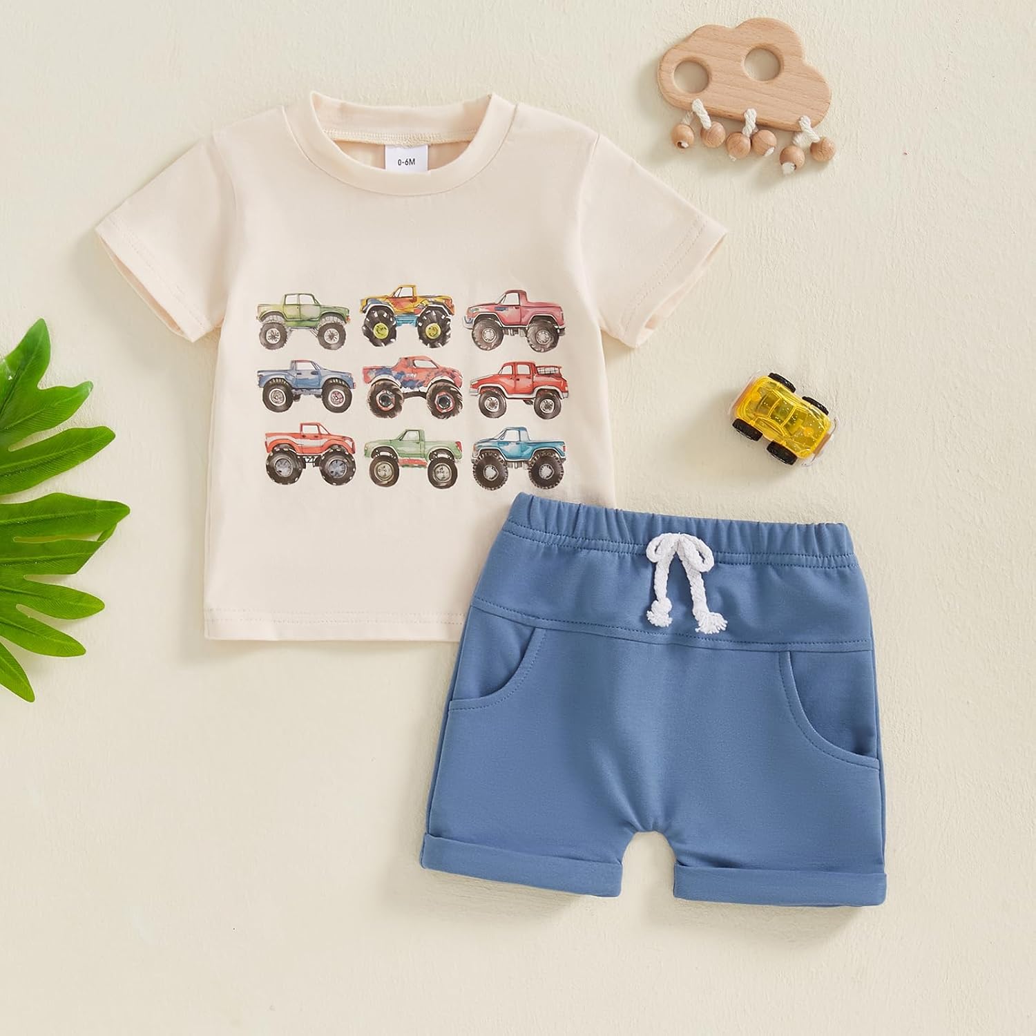 Tenues d’été pour bébé garçon, T-Shirt à manches courtes, col rond, broderie de voiture + pantalon court, taille élastique, ensemble doux pour bébé garçon