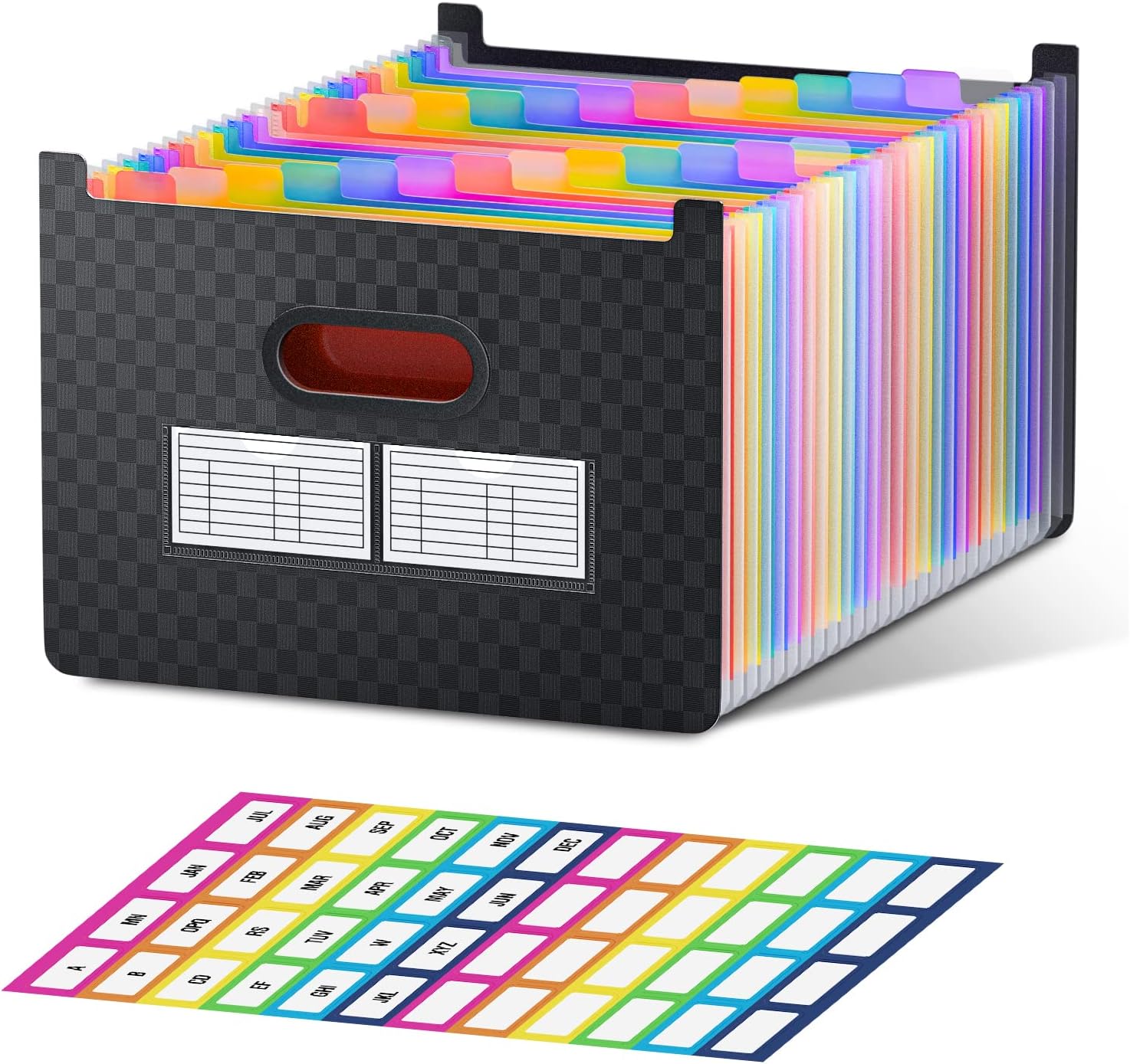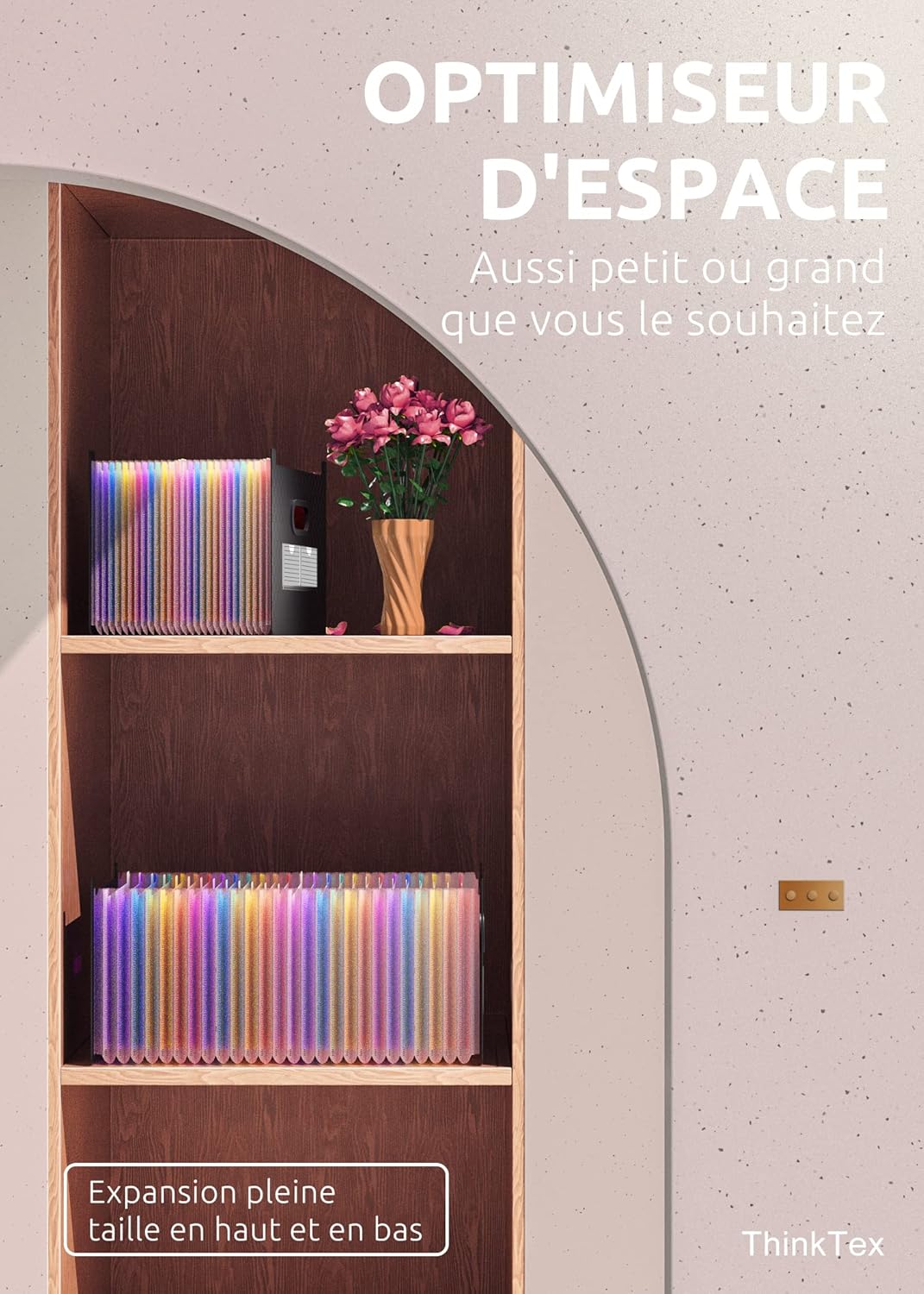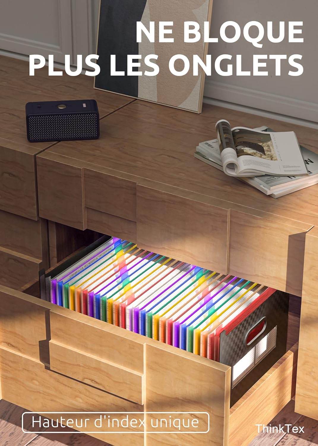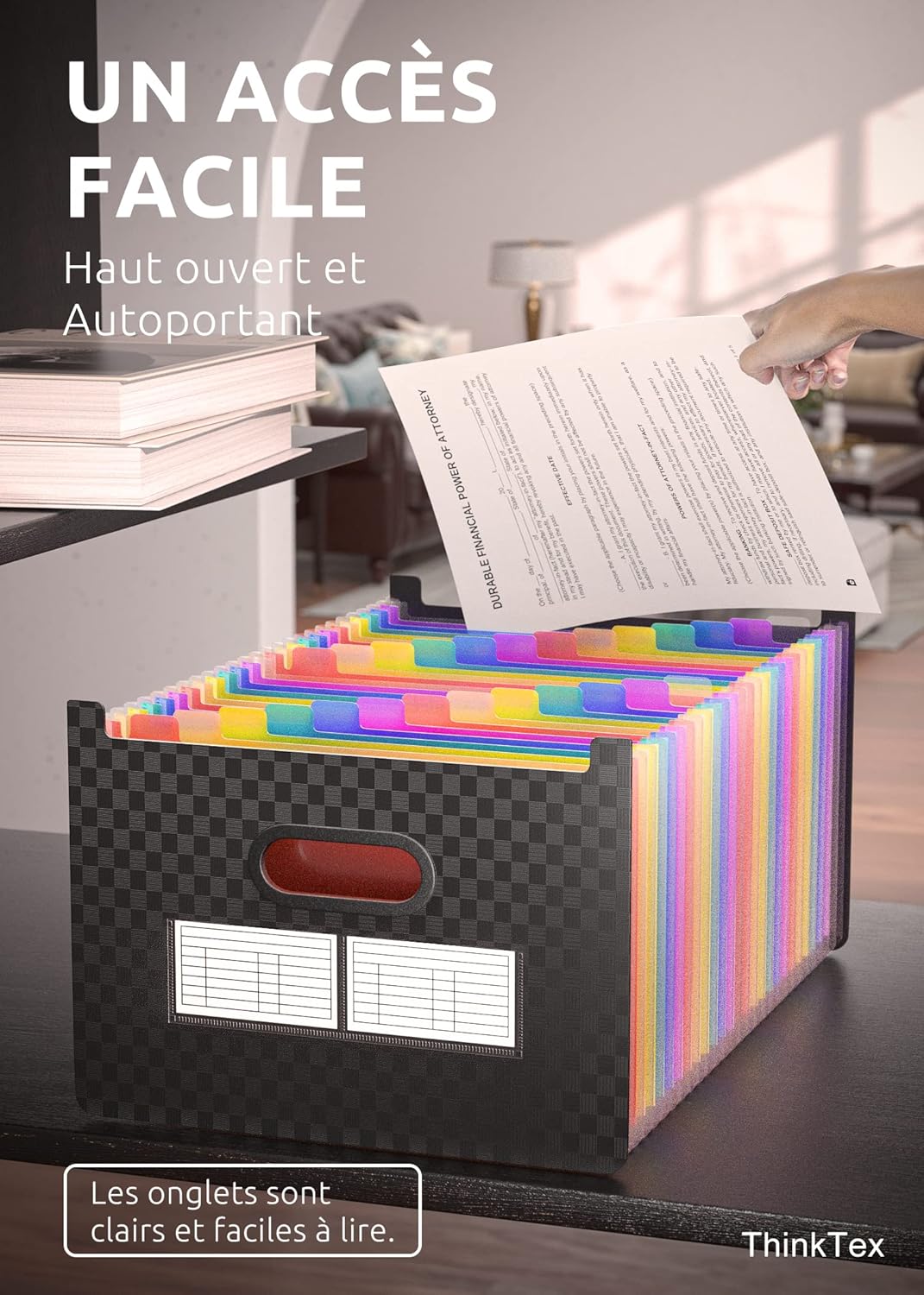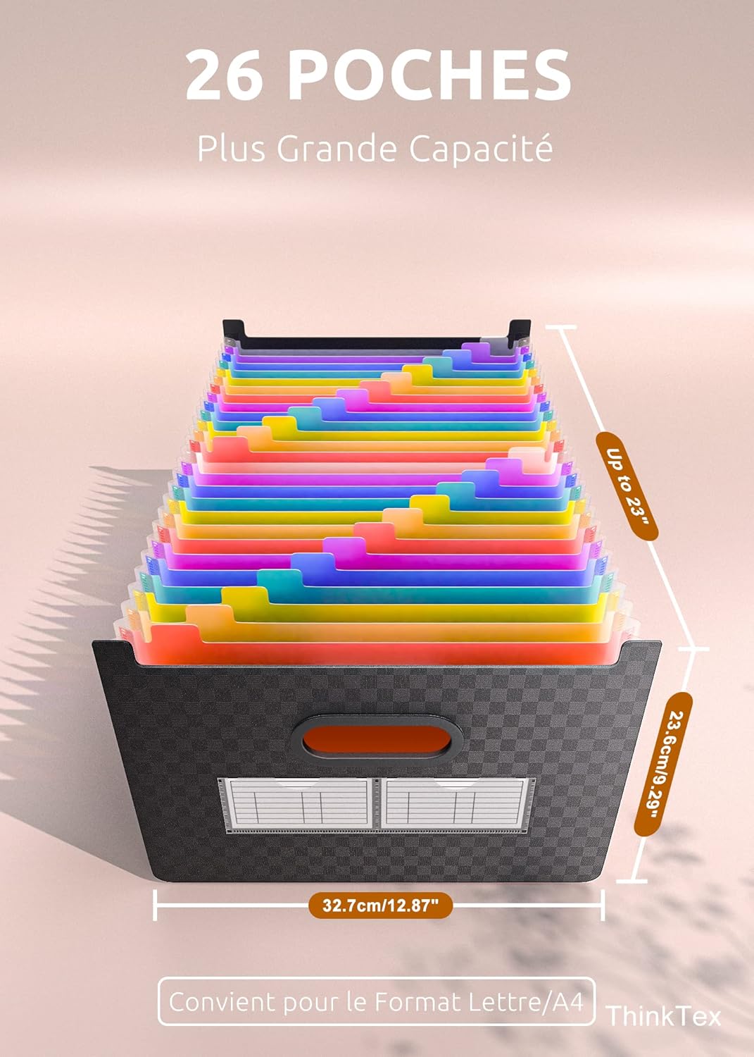 Vertical et extensible : ThinkTex Accordion File Organizer, 26 pochettes, onglets AZ multicolores, ouvert sur le dessus, pour A4.