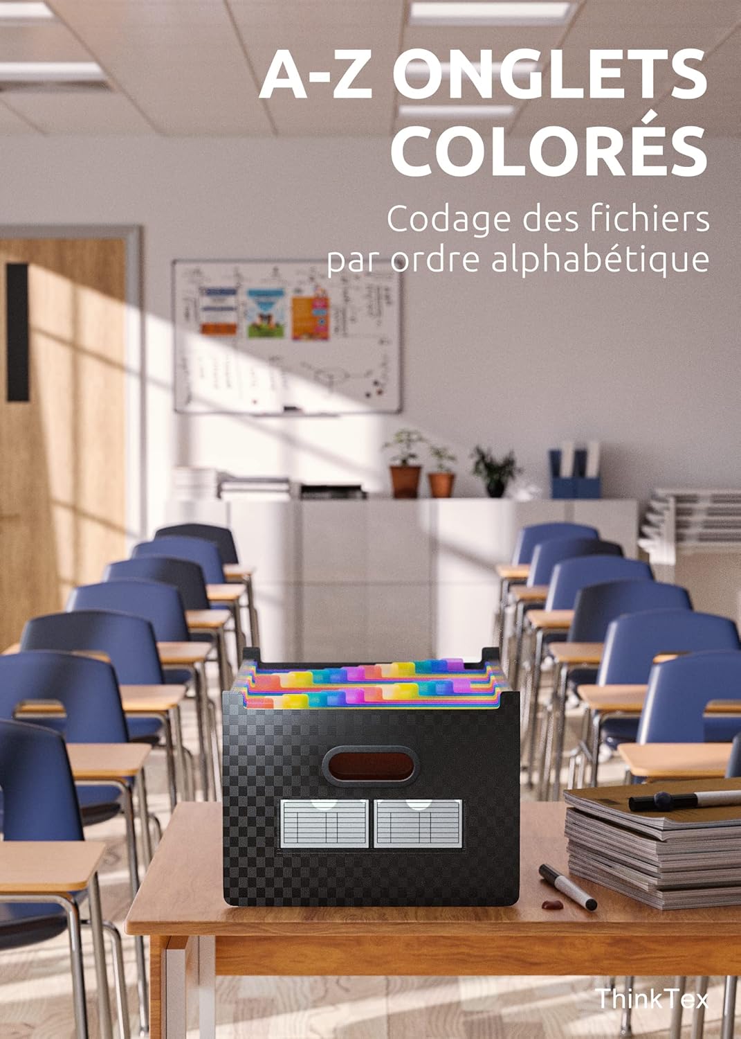 Trieur de documents ThinkTex 26 pochettes, dossier de fichiers A4, dossier, dossier, dossier, ouvert sur le dessus et vertical, onglets colorés de A à Z, pour bureau, famille, école