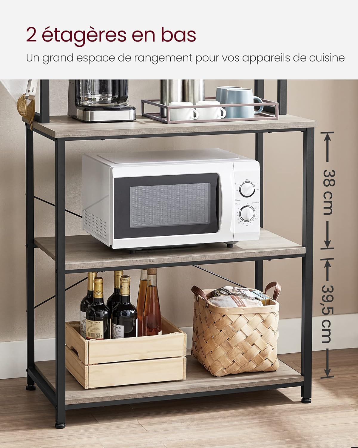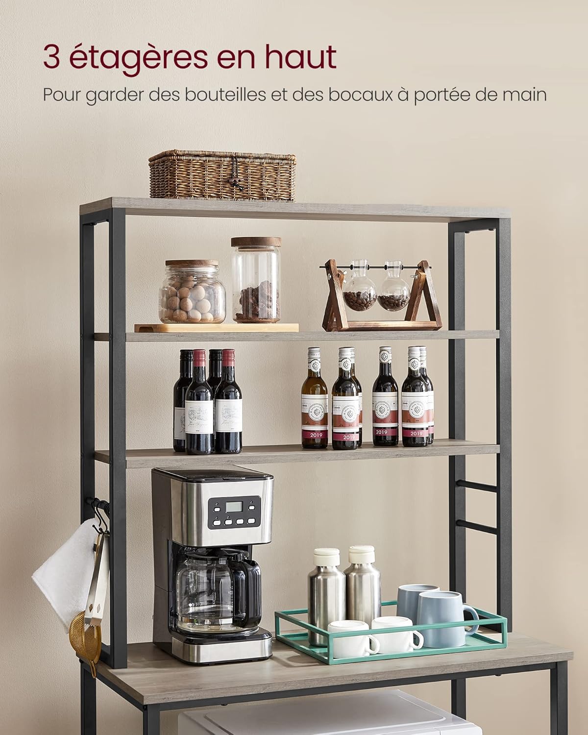 【STRUCTURE SOLIDE】 Fabriquée en acier et en panneaux de particules, cette étagère de rangement grège est suffisamment solide pour transporter votre micro-ondes, votre machine à café et d’autres appareils et ustensiles