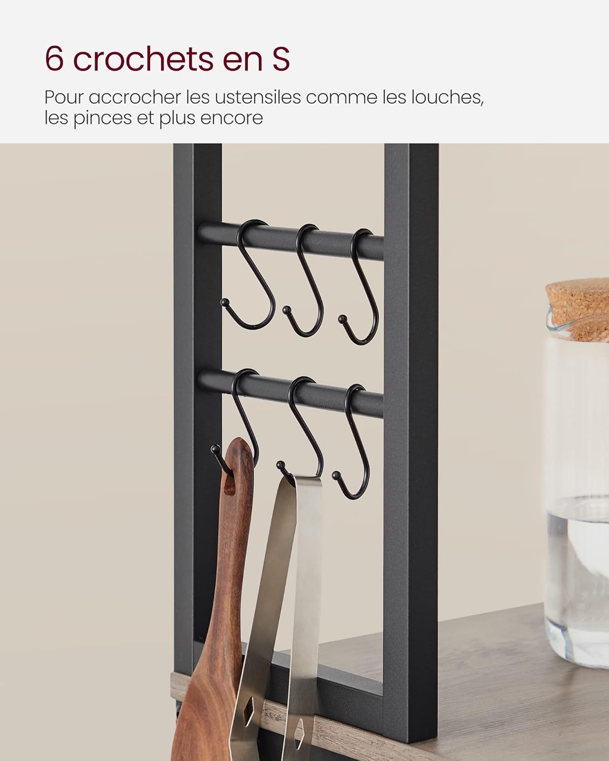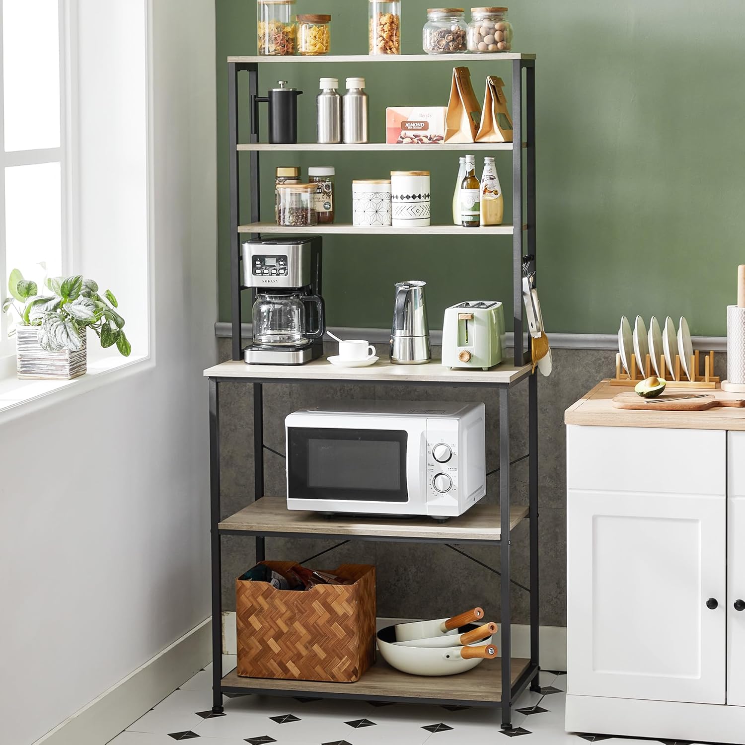 VASAGLE Etagère de Cuisine Etagère Machine à Café, 6 Etagères et 6 Crochets, pour Four Micro-Ondes, Structure en Acier, Style Industriel, 40 x 80 x 167 cm, Grège et Noir KKS019B02