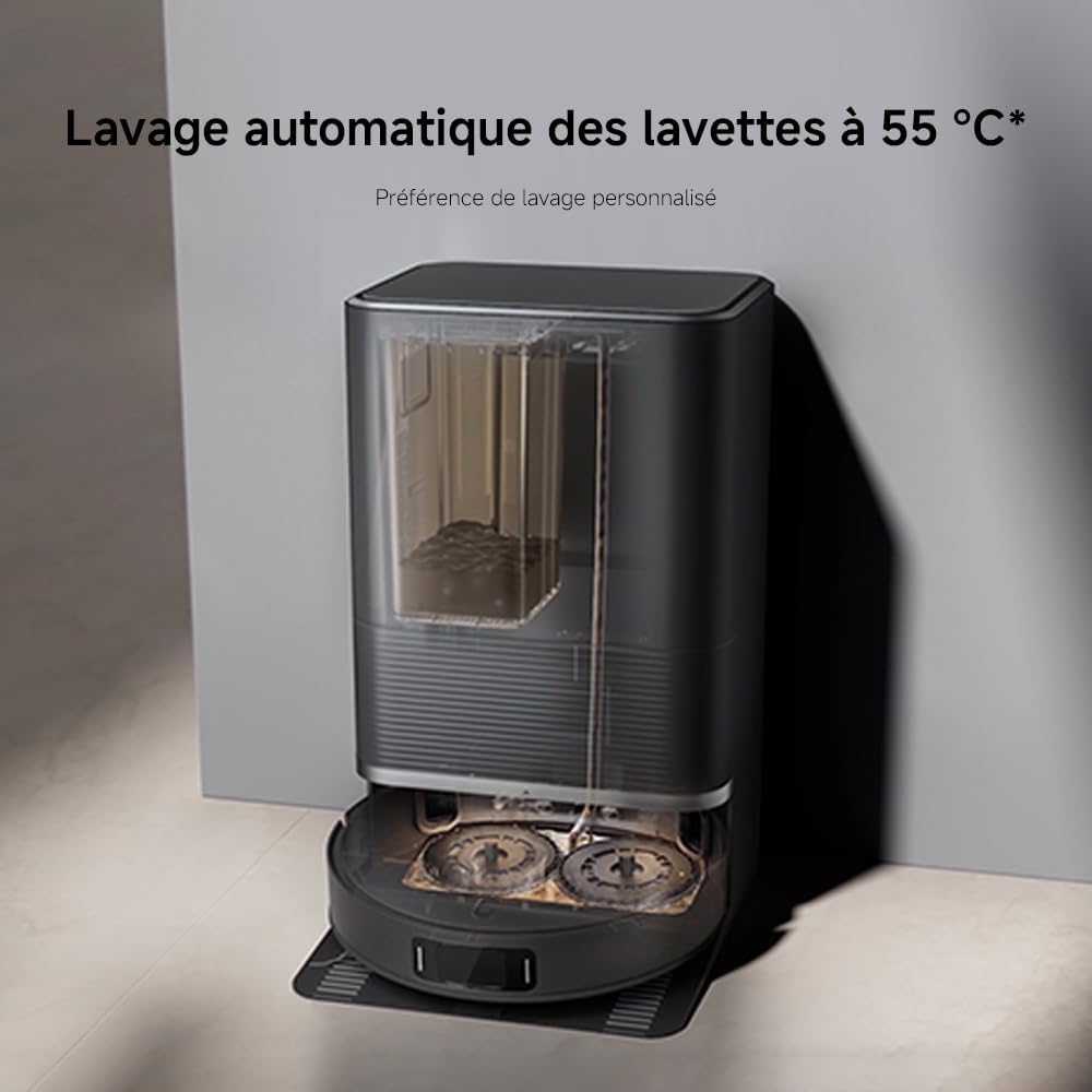 Station de déchets automatique : élimine le besoin de vider le réservoir fréquemment, offrant une durée de vie prolongée de la batterie et un entretien minimal pour une expérience de nettoyage sans tracas.